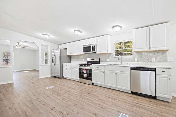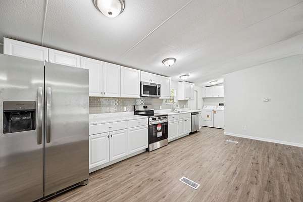 Freshly REMODELED 1996 DWMH on 5.18 ACRES! This home features BRAND NEW appliances, luxury vinyl plank flooring throughout, two open decks, and a concrete rock parking pad! The master bathroom has also been upgraded with a tiled walk-in shower and dual sinks. Outside, you will find a metal shed, pole barn, and a metal roof on the home. No HOA and no deed restrictions. Come see what the country life is all about. This naturally wooded lot sits just inside city limits, but still offers plenty of privacy with a touch of convenience. Just a minutes drive to local shopping, dining, medical amenities, and schools. Located in Gilchrist County with low property taxes and "A" rated schools.