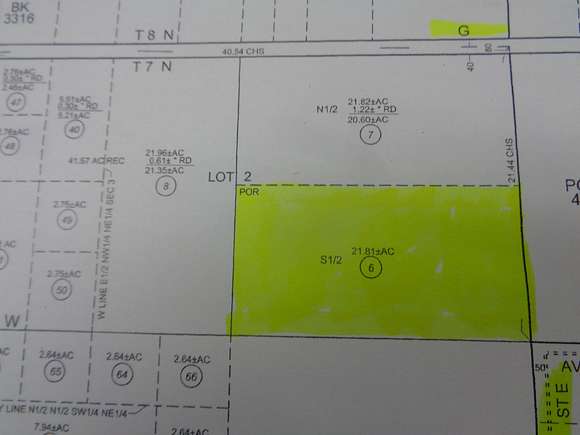 Est $370/moNice 21.65 acres with a view of the valley. Nice level property 660 by 1320. this a great area for you to build a Ranch house for you family to have Horse's and farm animals. Their is water on Ave. G and electric about 660 ft to ave G. seller will look at all offers and wants to sell.