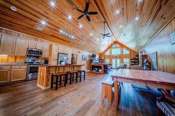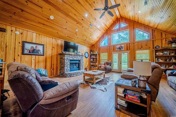 Custom-built home situated on 8 beautiful acres in the desirable Chapel Creek subdivision within the Harmony Grove area. This property offers the perfect blend of neighborhood living with a private, country feel. Inside, you’ll find vaulted ceilings and a massive open floor plan designed for gathering and entertaining, complete with a gas log fireplace in the living room. Floor-to-ceiling windows across the back of the home showcase peaceful views and natural surroundings, bringing in an abundance of light. The split floor plan provides ideal privacy, with a spacious primary suite featuring two walk-in closets and an oversized walk-in shower. Additional rooms offer 10-foot ceilings, adding to the home’s open and airy feel throughout. The spacious double garage includes a fully floored attic, providing excellent storage space.