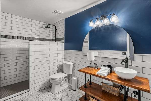 Set on a private, wooded lot, this home offers peaceful upstate living with exceptional future potential. The main level welcomes you with hardwood floors, oversized living room and stunning stone wood burning fireplace with eat in kitchen with a dream pantry. The primary bedroom is spacious with a separate shower and tub. The 2 additional bedrooms share a fully updated bathroom featuring subway tile and modern fixtures. The basement is where the ideas will flow! Partially finished with a gym and bonus room, there is ample space perfect for a wine cellar, food storage, workshop, or additional living space. This home also has a new HVAC. Outside you will enjoy a large back deck overlooking a serene wooded backdrop and fenced yard. Whether you are grilling, relaxing, gardening, or watching the abundant wildlife, the enjoyment of your surrounding is inevitable. There are multiple producing fruit trees and vines on the property as well as a year round creek. No restrictions, paved parking for a boat or camper and 5 mins from multiple Lake Keowee boat launches. You don't want to miss this one!!