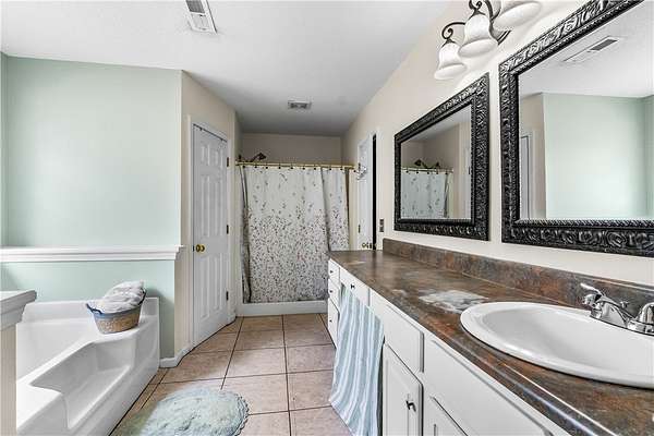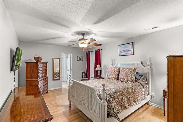 - Breakfast Area, Ceiling Fans, Fireplace, French Doors Atrium Doors, Garden Tub Roman Tub, Granite Counters, Laminate Countertop, Main Level Primary, Separate Shower