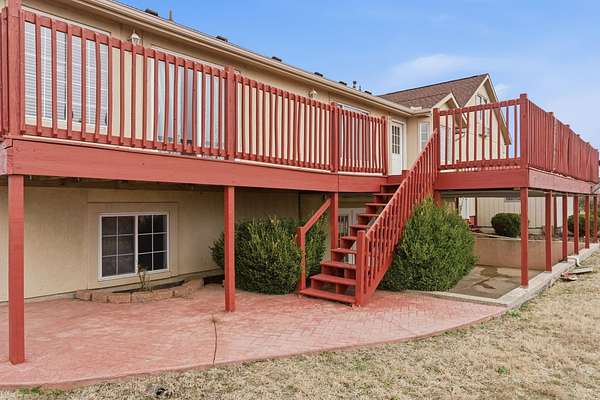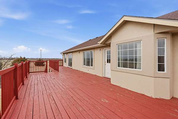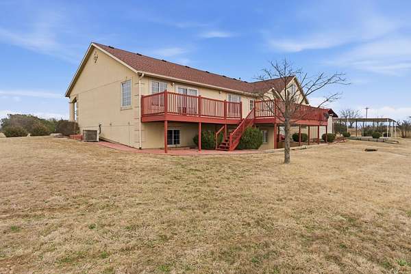 Ready for luxury on acreage? This custom-built home just outside Wellington, Kansas, shines with heartfelt details like three en suite bathrooms, a shared Jack and Jill bath for the rest, walk-in closets in every bedroom, and generous parking. With five bedrooms plus four and a half baths, it sits on a full six acres of land. Step into an open layout with a formal dining area that leads seamlessly to a spacious kitchen complete with black granite countertops, matching backsplash, and gas stove. The main level primary suite opens directly to the back deck for easy outdoor enjoyment. Down in the walkout basement, find three bedrooms, two baths, a cozy family room, laundry ready for two sets of washers and dryers, and storage. Upstairs adds another large bedroom and en suite bath. Outside, the sweeping circle drive makes arrivals effortless, while the three-car attached garage and two-car carport deliver plenty of parking for lively gatherings. All this, conveniently near town and only a 35-mile drive to Wichita.