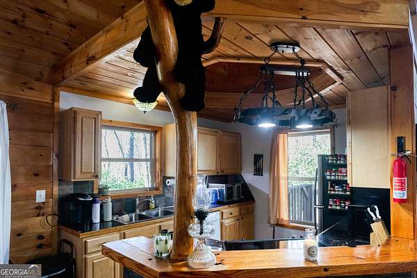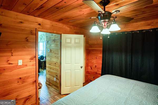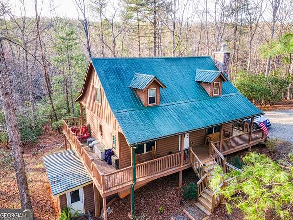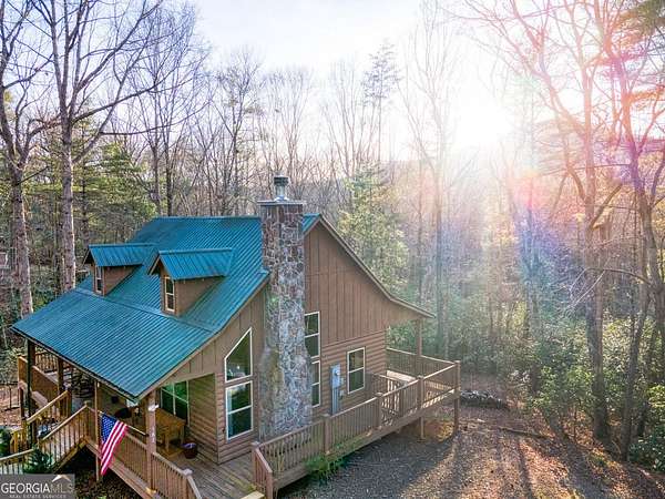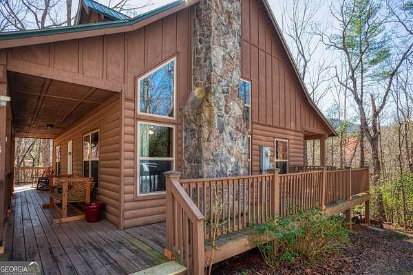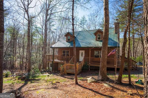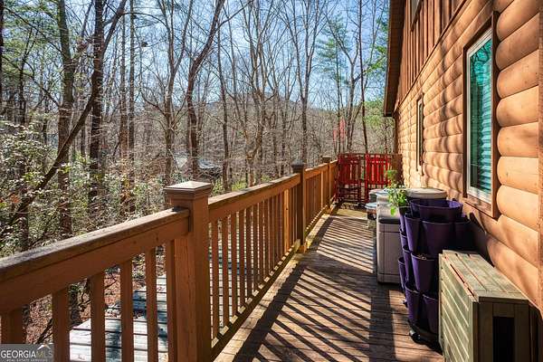 Tucked away on a serene 1.66-acre wooded lot, this beautifully appointed 3-bedroom, 3-bath cabin offers the perfect blend of mountain charm and modern comfort in the heart of White County, GA. Thoughtfully designed for privacy and flexibility, the home features a bedroom and full bath on each level, making it ideal for guests, multi-generational living, or maximizing rental potential. Enjoy a walk-out finished basement, inviting living spaces, and a wraparound covered porch perfect for relaxing while taking in the peaceful setting and seasonal mountain views. The back property line is bordered by a gentle creek, adding to the tranquil atmosphere and providing a beautiful natural backdrop. After a day of exploring, unwind in your private sauna, creating a true retreat experience. Outdoor enthusiasts will appreciate the close proximity to popular hiking trails, scenic waterfalls, and kayaking, all just minutes from the charming alpine-style town of Helen, known for its dining, shopping, and year-round festivals. Whether you're seeking adventure or tranquility, this cabin delivers the very best of North Georgia mountain living.