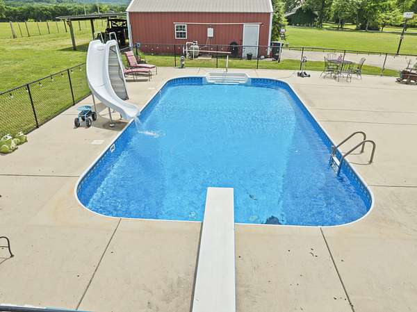Welcome to this gorgeous all-brick home nestled on 3.22 acres! This beautiful property offers a perfect blend of privacy, elegance, comfort, and functionality. This home has a fantastic floor plan that includes a bright and airy sunroom, perfect for enjoying the surrounding views. The large kitchen features beautiful oak cabinets that provide ample storage, making meal preparation a breeze in this well-appointed kitchen. Relax in the spacious living room featuring built-in cabinets and a charming fireplace, creating a warm and inviting atmosphere. The back yard features your own private outdoor oasis: Relax and entertain by your own sparkling saltwater pool, offering a serene space for outdoor enjoyment. The detached garage offers additional storage and workspace, ideal for keeping your vehicles or equipment safe and secure.