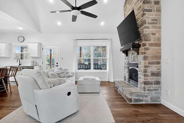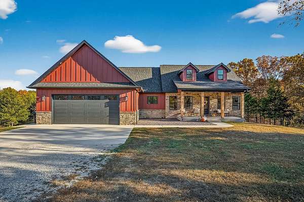 BETTER THAN NEW! Has your plan been to build on acreage but it hasn't worked out? 181 Lyla Drive might be the beautiful home you have been waiting for and it is MOVE IN READY! The festive outdoor holiday lights are already installed! This 2024 quality built home has character and the modern conveniences of new construction. Located in the Rogersville school district in Webster County on a 3+ acre lot meaning you can enjoy lower property taxes and fewer county regulations. Designed to make life easy with low maintenance materials like LP smart siding, dual fuel energy efficient heat pump and a wooded lot for less time spent mowing in the summer. You will immediately notice the charming front porch and stone accents. Inside you will find a beautiful, open concept living room and kitchen with vaulted ceilings, a cozy fireplace, stylish engineered hardwood flooring and nice dining area. The kitchen features quartz counter tops with an island, stainless steal kitchen refrigerator and gas range, and plenty of custom cabinets. Don't miss the walk-in pantry, custom shelves in the closets and the oversized laundry room, they do not disappoint! The primary bedroom is spacious with a large walk in closet with custom built in shelves. The primary bath features a dual sink vanity, soaking tub and walk-in shower. On the main level you will find a large, covered deck perfect for enjoying the outdoors. Full basement with a kitchenette, large living area, two additional bedrooms and a full bathroom. Heated and cooled John Deere room, an oversized garage and plenty of storage space! Starlink internet is set up and ready to go! Schedule your private showing today. You could be moved into your new home before the NEW YEAR!