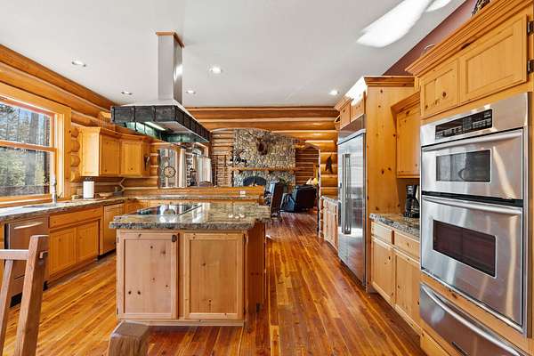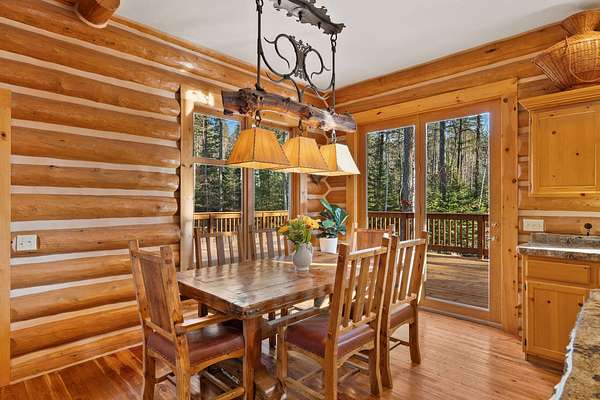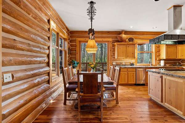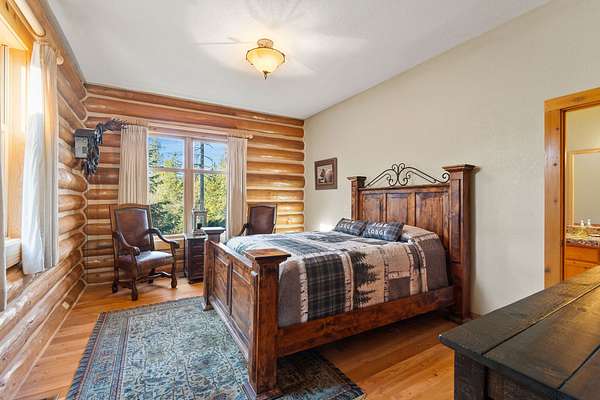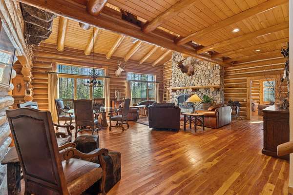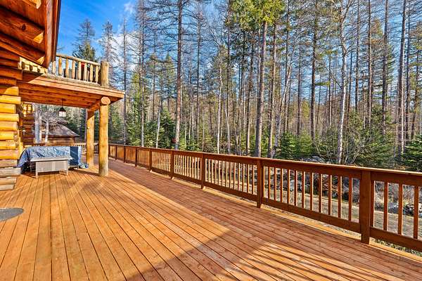The American West lives on at Burnt Leather Ranch, a contemporary, handcrafted log residence on nearly 20 scenic acres adjacent to State land. The custom hand-peeled Pioneer log home offers 4,212 SF w/ 3 bedroom suites & 5 baths. The open design features a great room & media room w/ massive stone fireplaces, beautiful fir & larch flooring, & a culinary kitchen built for entertaining w/ a wet bar. Outdoor living is highlighted by over 1,750 SF of cedar decking, including 2 Romeo & Juliet balconies off the primary suite, plus a stone patio & walkways overlooking a natural pond, open meadows, & old growth Douglas fir & larch forest. Enjoy year-round access through a private iron-gated log entrance, sweeping views of the Swan Mountain Range, & a prime wildlife corridor. Additional amenities include a 2-car heated attached garage & an oversized 4-car detached recreational garage. Located near Glacier National Park, Flathead Lake, Whitefish Mountain Resort, and the Bob Marshall Wilderness.