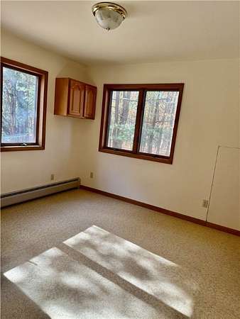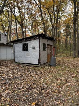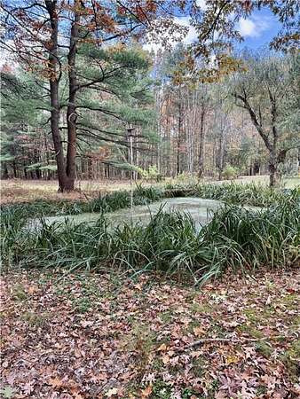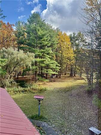 Inviting and Charming bright spacious contemporary amongst the trees on 10 plus acres mostly wooded acres with many extras. Home features three bedroom 2 full baths,striking sunroom with hardwood floors, french doors, large windows and a full walkout basement. Brand new metal roof, brand new hot water heater, hot water baseboard heat and a generator hook up. Large one and a half story Workshop which was the original home back in the day has electricity and a furnace. Giant frog pond, walking trails and many outdoor shed/shelters for storage. Being offered "AS IS." A real gem for those with vision.