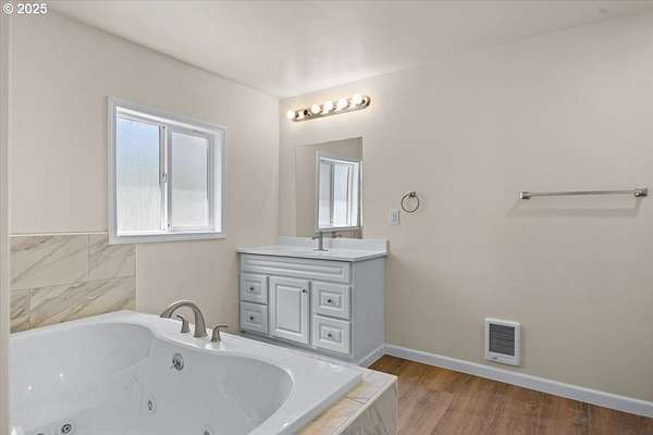 - Ceiling Fan, High Ceilings, Laminate Flooring, Laundry, Soaking Tub