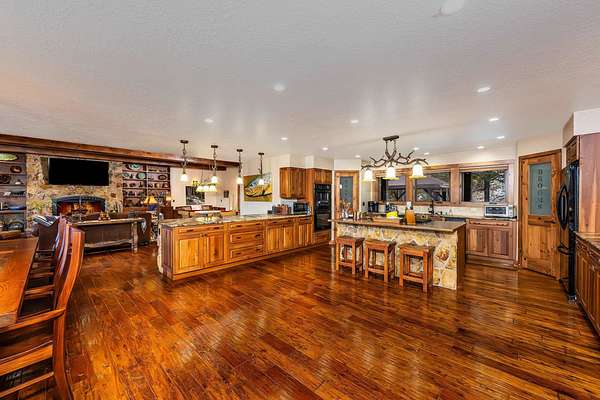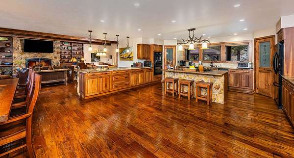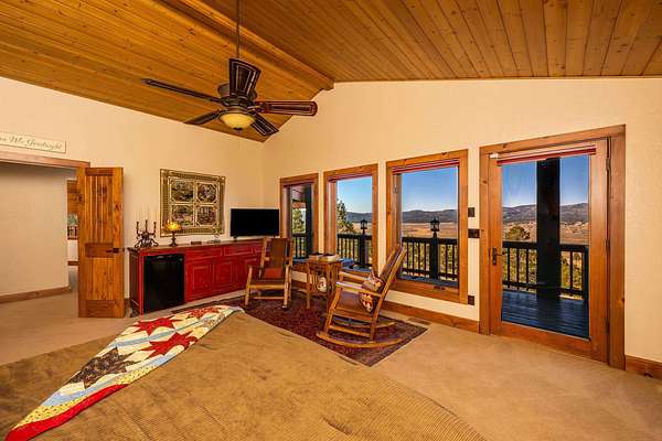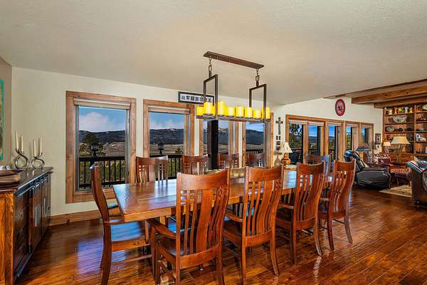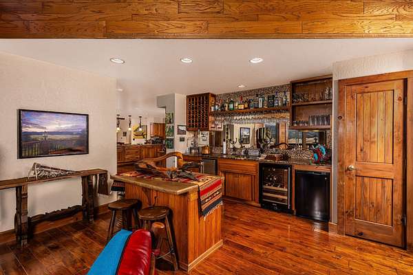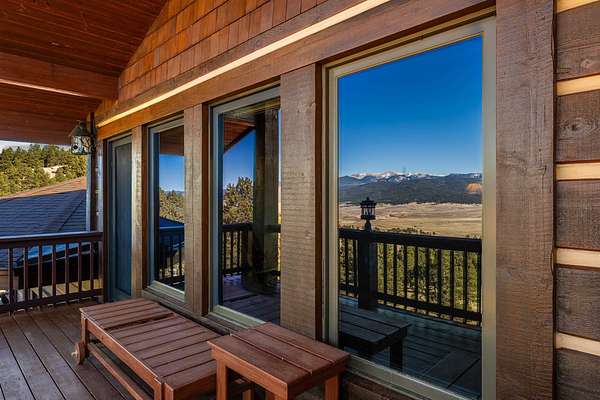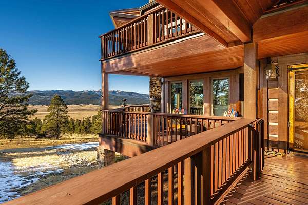 You would be hard-pressed to find a more beautiful home in a more breathtaking setting. This exceptional custom mountain residence showcases high-end finishes throughout, including granite countertops, custom cabinetry, two stone fireplaces, a whole-house generator, and an elevator accessing all levels. The expansive great room features a stone fireplace, TV, and pool table, and opens seamlessly to the massive kitchen and dining area-perfect for entertaining. A second living area offers a wet bar, fireplace, and a dramatic wall of windows framing sweeping views of the Wheeler Peak range and abundant wildlife. The primary suite is a true retreat, boasting stunning views and a spa-like bath with a large soaking tub, walk-in shower, separate vanities, and generous space. The lower level includes a cozy den and a charming wine room with a sitting area-ideal for quiet moments of relaxation. A four-car garage provides ample room for vehicles and mountain toys. Step outside to enjoy the gazebo, complete with an antique wood-burning stove and accessed by a wood walkway for year-round enjoyment. Make the right offer and the 2015 Ford pickup and Ranger side-by-side will be included. Additionally, the owners are offering their Angel Fire Resort membership lot as part of the sale, adding exceptional value and access to resort amenities. This spectacular home offers the perfect blend of luxury, comfort, and natural beauty-ideal for entertaining and creating lasting generational memories. Shown by appointment to qualified buyers only.