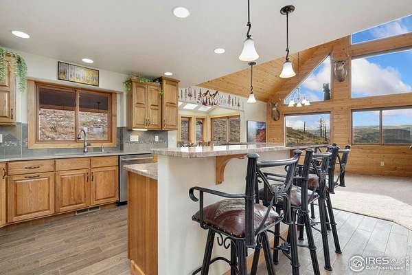 Nearly five acres of secluded beauty in Glacier View Meadows! This custom-built retreat sits on a quiet dead-end with an elevated position that delivers front-row seats to the night sky and endless mountain views. Step inside a striking two-story A-frame featuring an open main living area filled with light, vaulted tongue-and-groove ceilings, and oversized picture windows that frame the mountain landscape. The kitchen includes granite countertops, stainless steel appliances, generous prep space, ample storage, and a breakfast bar with seating that make this the perfect place for casual meals or lively conversation. A dedicated office area offers a quiet place to focus and can easily convert into an additional bedroom when needed. Unwind in the spacious primary suite tucked away upstairs, which features a loft-style sitting area, a walk-in closet, and a large ensuite bathroom with dual sinks and a custom shower door. The walk-out basement further expands the living space with a large recreational area, a wet bar, and two additional bedrooms, providing plenty of flexibility. Wake up to horizon views from your wrap-around deck and enjoy the sweeping sightlines and crystal-clear stargazing! Whether sipping coffee at sunrise or spotting the occasional wildlife wandering by, this outdoor space brings nature right to your doorstep. The detached 3-car garage includes a workshop space, with plenty of room for vehicles, outdoor gear, or creative projects. Live surrounded by adventure in a community that is bordered by national forest and includes three private lakes, offering endless access to hiking, fishing, hunting, and exploring. For those dreaming of extra space, the adjacent .92-acre lot is negotiable, giving the opportunity to expand your slice of paradise.