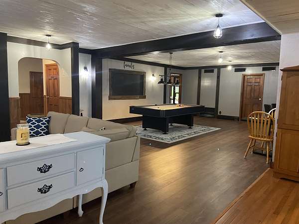 THIS HOME IS A REAL JAW DROPPER...With over 8400 square feet of amazing living space this property sits on 2 acres of land and offers 7 bedrooms with 4 full bathrooms and 2 half bathrooms. The gourmet kitchen is a cooks dream with a 14 foot island, Kraft-Maid soft close cabinets, Quartz countertops, 10 burner natural gas stove, refrigerator and also an industrial fridge and freezer along with a commercial undercounter dishwasher with a 80 second cycle for ultra fast washing. Off the kitchen there is a fantastic coffee bar/snack area which overlooks the enormous great room that offers dining and sitting space. Also on the first floor is the primary bedroom and bathroom, 2 half baths and the family room area with fireplace. There is a recreational area with pool table and the theater room which includes a 6 1/2 foot tall by 11 foot wide wall mounted screen with smart projector and reclining seating on a tiered platform for 9 viewers. The sunroom is also accessed from the pool table area which offers French doors for privacy and lots of natural lighting. The oversized gym and laundry area completes the main floor along with walk in closets in bedroom and mud room. Through the huge entry and large staircase you will enter the upstairs which offers an additional den, 6 bedrooms and 3 remodeled bathrooms. The flooring throughout the home is hardwood, tile and some laminate. The heating is natural gas and there is central air conditioning on the main floor with a large central air unit which is new along with three new mini-split units, two in the kitchen and one in the gym. Additional updates include windows, siding, doors and roof all within the last 5 years. The amenities this home offers is endless and must be seen to be believed. Truly an exceptional home! Please qualified customers only!