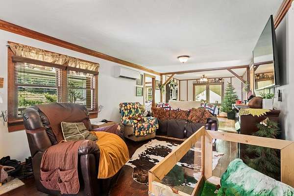 Set on over two unrestricted acres, this PARTIALLY FURNISHED single-level home offers an ideal blend of modern comfort and rural charm. Conveniently located on a paved road with a short gravel driveway, the property is thoughtfully landscaped with mature evergreens, flowering shrubs, and expansive open spaces that enhance its peaceful setting. Fully remodeled in 2016, the home features a durable metal roof installed in 2021 and an inviting covered front porch that creates a warm first impression. Step inside to the living room, with rich wood flooring, built-in bookshelves, and a cozy gas-log fireplace. The adjoining dining area flows seamlessly from the living space, providing a versatile layout well suited for both everyday living and entertaining. The bright, well-appointed kitchen is the heart of the home, with a pretty bay window over the sink, generous cabinet and counter space, a pantry, and a skylight to bring the outdoors in. Just off the kitchen is a spacious laundry room with a convenient utility sink and a door leading out to the backyard. Down the hall, two comfortable bedrooms and a flexible bonus room offer adaptable living options, each enhanced with electric fireplaces for year-round comfort. The full bathroom features a dual sink vanity, providing ample cabinet and counter space. Outdoors, a detached double carport offers covered parking, while the expansive grounds present endless opportunities for gardening, recreation, or simply enjoying the tranquil surroundings. Fiber Optic internet ensures fast, reliable connectivity for remote work and entertainment. With the serenity of country living in a picturesque setting, this property will be a peaceful place for you to call home.