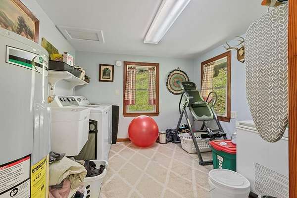- Attic Fan, Double Vanity, Laundry On Main, Paneling, Pantry, Partially Furnished, Primary On Main, Skylight, Smoke Detector, Washer/Dryer Connection