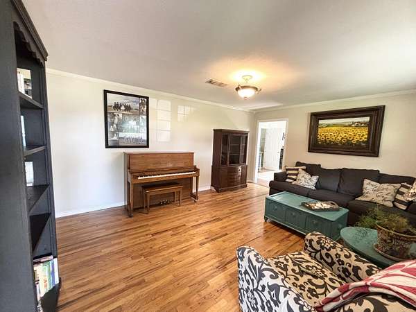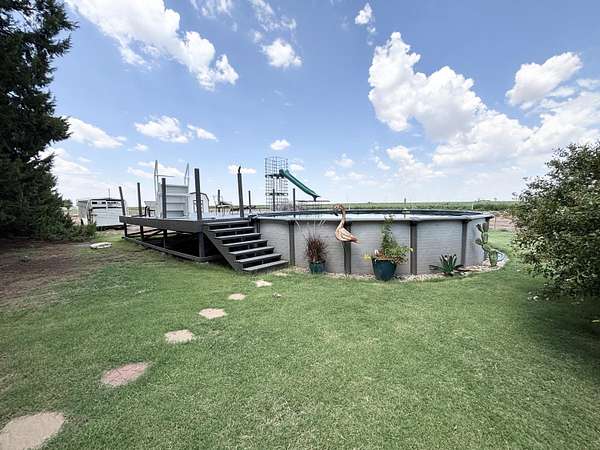 Don't miss this stunning farmhouse paradise on five acres NW of Plainview. Surrounded by an abundance of mature trees, this 2582 sf home features four bedrooms and two bathrooms. It also has two living spaces and an inviting back porch with electronic shade screens that's perfect for those beautiful West Texas days. The cooks in your family will fall in love with the large kitchen splashed with natural light, beautifully stained cabinets, a large island, gas stove, double oven and granite countertops. Those who love character will appreciate the original hardwood floors as well as the splash of updates throughout the home. Situated on five perfectly laid out acres, the property features an above ground pool w/ deck and a slide to keep the kids entertained for hours. Also, there's a small guest house/efficiency on the property with a shower that is perfect for guests needing extra space. There are two sheds that create lots of room for outdoor storage, one of which could serve as a farrowing house for any show pig raiser. Also conveniently located out the back of the house is a storm cellar that you wouldn't be afraid to go in. It also provides the perfect space for additional storage. This one is a must see for those buyers wanting the solitude of living in the country.