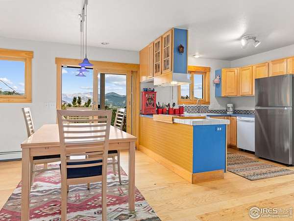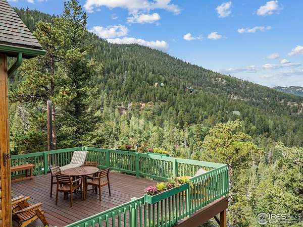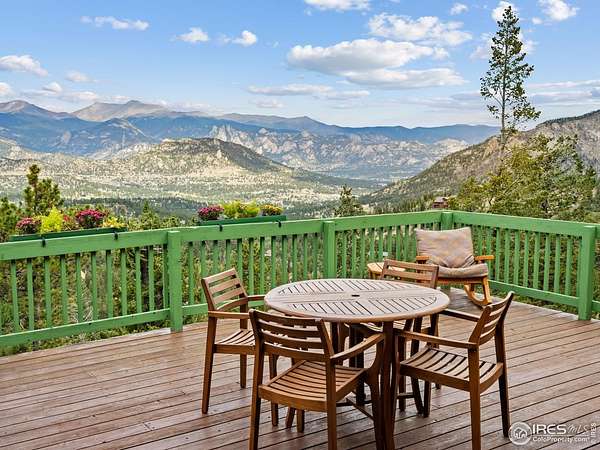 Breathtaking Panoramic Views from a Mountain Retreat-Perched on a 1.73-acre lot bordering the Roosevelt National Forest, this charming three-level mountain home offers stunning, uninterrupted views of the Estes Valley, Rocky Mountain National Park, the Mummy Range, and beyond. With 1,952 sq. ft. of living space, this European-inspired residence features 2 bedrooms, wood floors, and cozy, intimate living areas throughout. Step out onto the expansive deck-your personal IMAX screen to nature-where you can soak in the sights and serenity of your surroundings. Whether you're seeking solitude or a place to host gatherings with friends and family, this home offers the perfect balance of privacy and comfort. Enjoy year-round living or a getaway in the mountains above Estes Park, just a short drive from town and the national park. Experience the very best of mountain living, where peace, beauty, and natural wildlife surround you. A new snow blower is included in the sale.