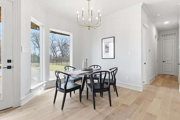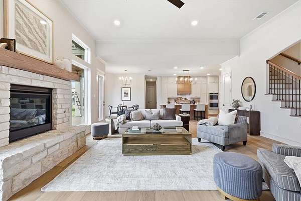 Experience timeless elegance and Texas luxury in this 2026 reimagined traditional residence, set on two acres within a quiet Lucas cul de sac. This home captures a sense of timeless comfort where open spaces flow together effortlessly for both daily living and grand entertaining. Inside, wide plank engineered wood flooring and tailored moldings provide a refined foundation for the airy, sunlit interior. The living room, anchored by a limestone fireplace with a warm oak mantel, connects seamlessly to a kitchen defined by its white oak accents and quartzite crystal surfaces. Professional grade KitchenAid appliances and custom cabinetry ensure the space is as functional as it is inviting.