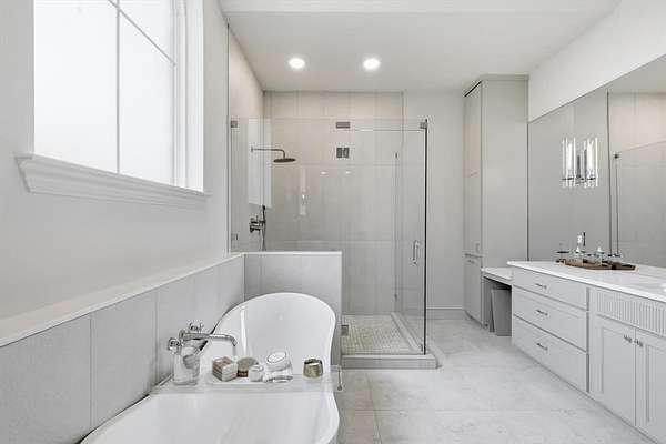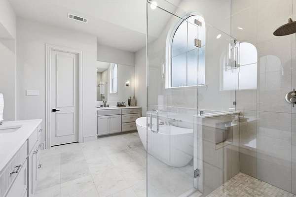 The primary suite serves as a spa inspired sanctuary, offering a freestanding soaking tub and a custom glass shower enclosure. Throughout the home, solid core doors and marble tile accents reflect a commitment to quality craftsmanship. Outside, the property transitions to a private retreat featuring a resurfaced pool with new tile and a sprawling landscape framed by an established privacy tree line. Whether enjoying a quiet morning by the water or hosting gatherings under the Texas sky, this estate offers a lifestyle of quiet sophistication within the award winning Lovejoy ISD.