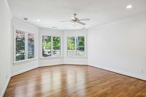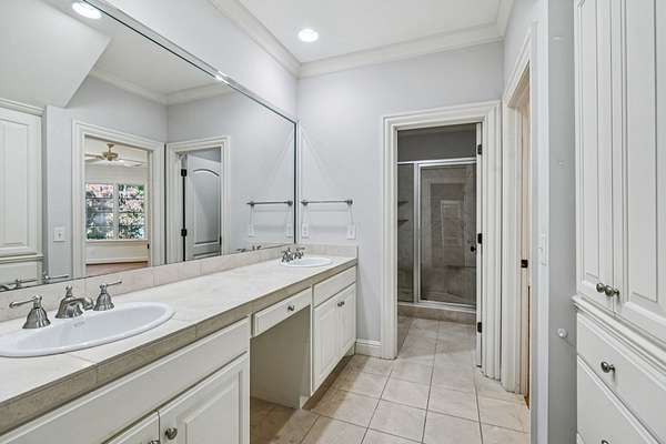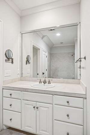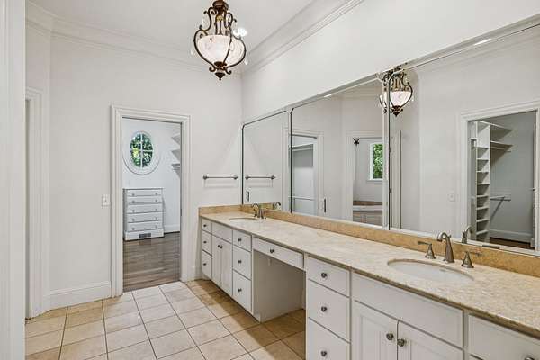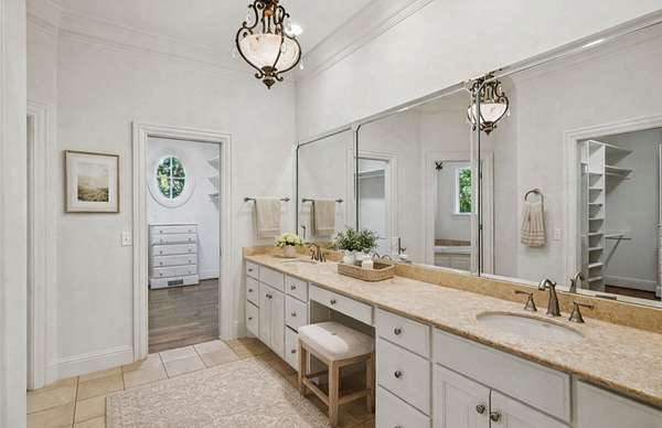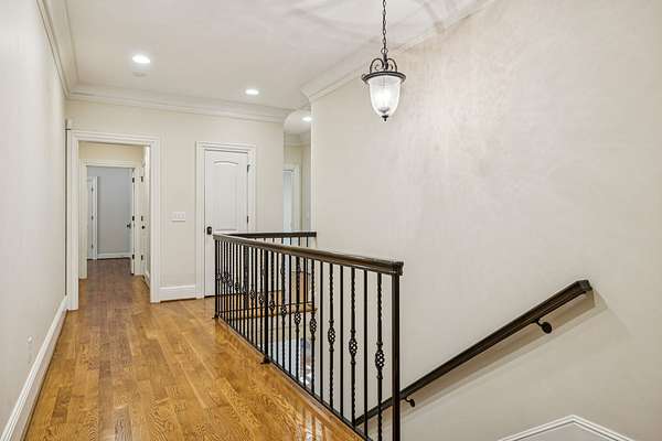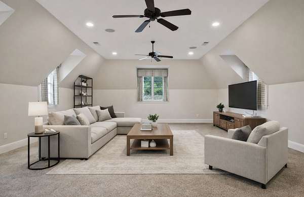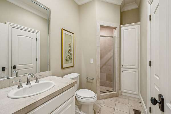 The main level includes a true primary suite and an additional guest suite, while a second primary suite upstairs provides exceptional flexibility for multi-generational living. The sixth bedroom is well suited for a gym, nursery, or hobby room. Refined finishes, abundant natural light, expansive walk-in attic storage, central vacuum, and excellent overall storage reflect the quality of a thoughtfully built home rather than a speculative build.