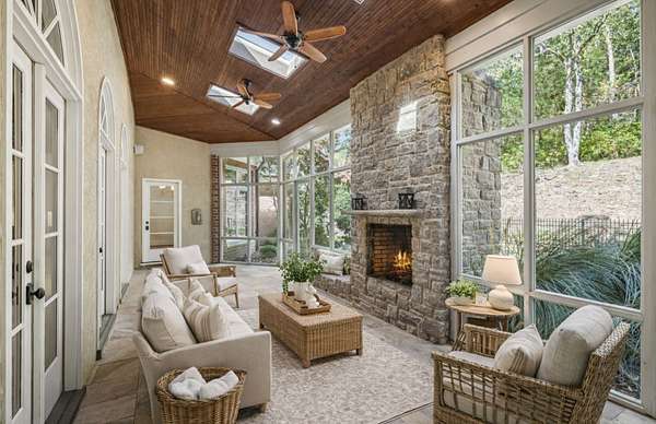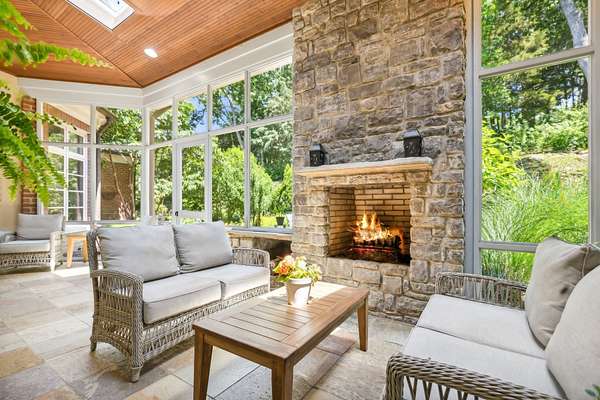 Outdoor living is anchored by an exceptional screened-in porch offering approximately 320 square feet of comfortably enjoyed living space not included in the home's stated square footage. Ideal for nearly year-round enjoyment, the porch overlooks mature trees, creating a serene, private setting enhanced by stone accents.