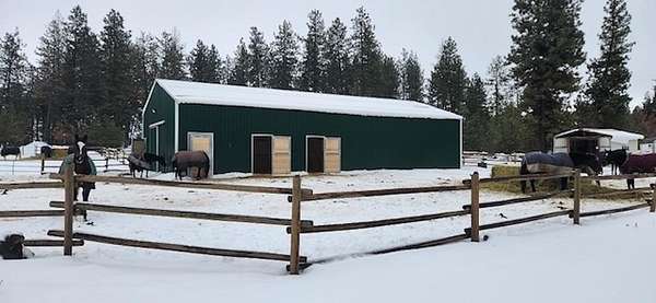 Fabulous Horse Property designed by an equestrian professional for optimum care & convenience! Located 12 miles from downtown Spokane (all highway) & boarders Slavin Park w/600 acres of non-motorized trails. This 20 acre equestrian property offers a blend of functionality & charm. Live in a cozy 2-bdrm, 1.5-bath stick-built home w/room to build your dream home on the adjacent 10acres. Top-tier horse amenities; 60x60 indoor arena, fully matted 9 stall stables on concrete slab(3 dividable foaling size), w/attached paddocks, heated feed/tack room, commercial washer/dryer, spacious hot/cold water wash bay. Partially treed turnout, strategically fenced & cross-fenced, auto-filling heated waterers (plumbing & electrical underground), gutters, french drains, security lights, new transformers & electrical panels for barn and home. This property is ideal for riders, trainers, & horse enthusiasts alike, offering both tranquility & accessibility. Additional 20 acres avail which would make this a total of 40 acres!