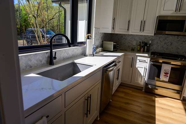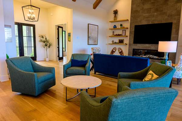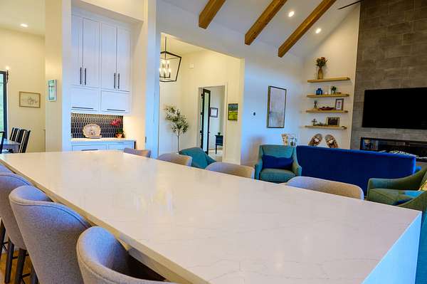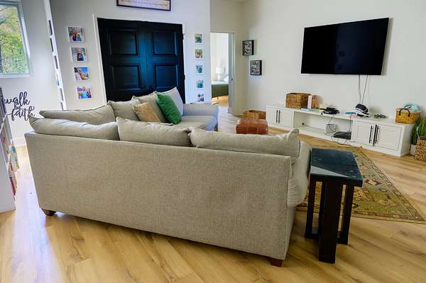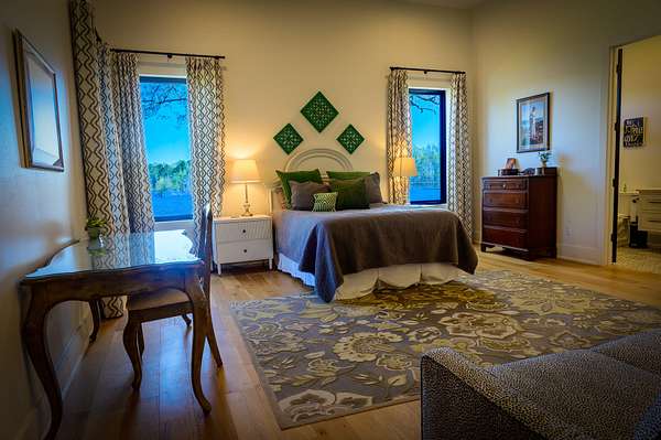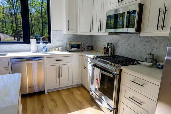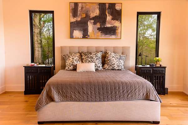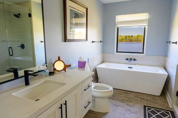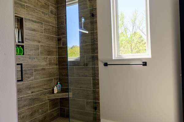 The second home is 1800 sq. ft. with 3 bedrooms and 2 1/2 baths. On the first level you'll find a half bath, the living room as well as the kitchen and eating area. The master bedroom is also on this level with its own master bath. The views from here are just as spectacular as the main home. Big windows line the back wall giving you lots of light and endless views. When you get upstairs you'll find a nice sitting area between the two bedrooms on either end of the floor. In the middle is a beautiful full bath with tub and a seperate shower. There is a two car garage as well.