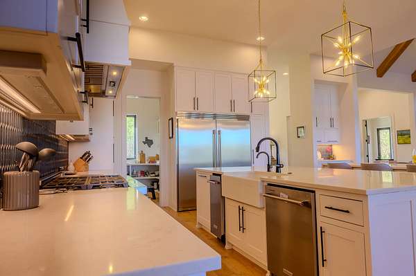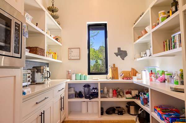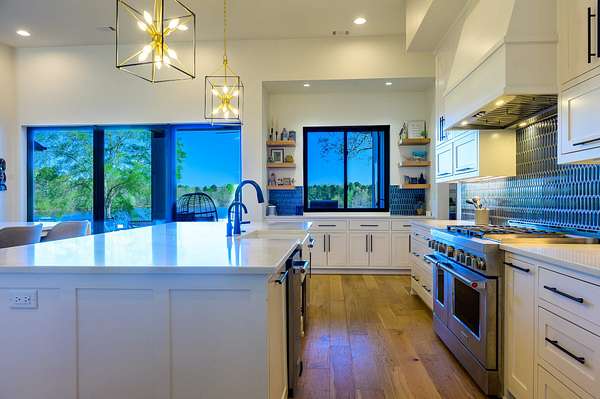 The primary home is 5810 sq. ft. in size with 6 bedrooms, 5 1/2 baths, office, beautiful kitchen with Kitchen Aid top end appliances. A huge walk in pantry, extra large laundry room, 4 car garage with a safe room. Upstairs there is a large room in the middle of 4 bedrooms each with their own bathrooms. This is a quality built home with all the icing. The views of the lake are simply beautiful. Sit on your covered back patio while cooking on the outdoor kitchen or hop in the hot tub and watch for the local eagle to make an appearance.