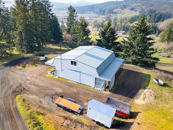 Custom built in 2007, this exceptional 25-acre retreat just outside of Willamina offers privacy, extensive improvements, and sweeping views. The property includes an oversized two-car detached garage with storage and a finished upstairs bonus level with balcony that is ideal for a home office or guest space. This property also benefits from two shops, one heated with a wood stove, full-length overhangs, and a complete upstairs game room, and a second 30x30 shop for equipment, projects, or storage.The custom home offers over 2,300 square feet of well designed living space with quality craftsmanship, carefully selected finishes, and areas suited for both daily living and entertaining. The functional kitchen features generous workspaces and an efficient layout, the main level is complemented by an oversized utility room with exceptional storage and organization. The home includes four bedrooms and two and a half bathrooms, including a main level bedroom and a primary suite with a spa-like ensuite. Additional highlights include a private sauna and multiple covered outside areas for year round enjoyment. The land features winding trails, abundant wildlife, and space to garden, ride, or raise livestock, along with a she shed, treehouse, and fruit orchard with apple, pear, and plum trees all set against stunning territorial views. Enjoy peaceful seclusion less than 10 minutes to town, approximately 30 minutes to McMinnville, and about 45 minutes to the Oregon Coast.