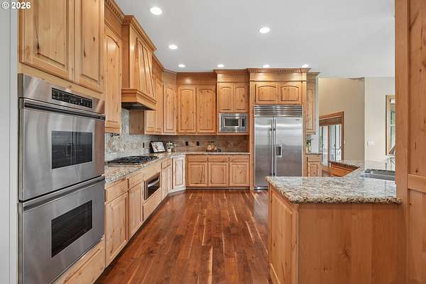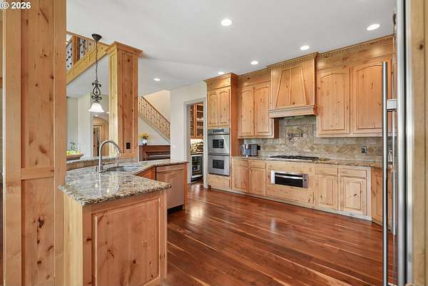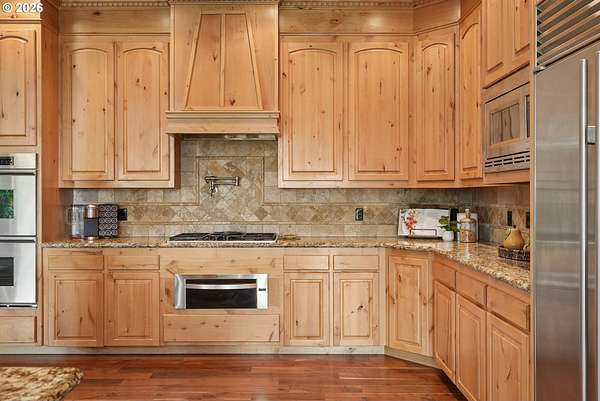 - Builtin Range, Builtin Refrigerator, Butlers Pantry, Dishwasher, Double Oven, Gas Appliances, Granite, Island, Microwave, Pantry, Pot Filler, Stainless Steel Appliance, Wine Cooler