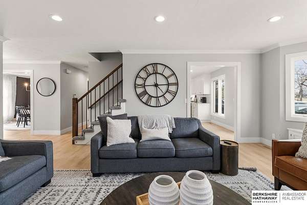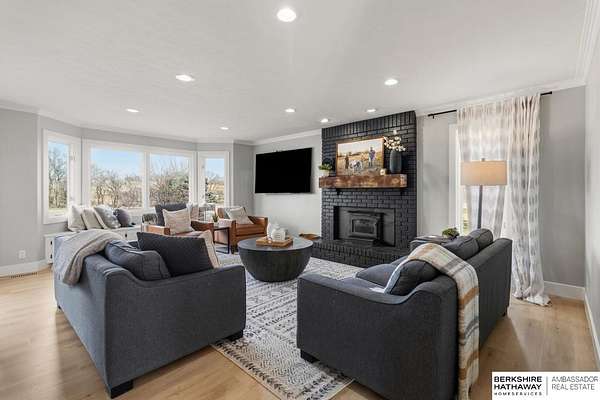 Shannon Salem, M: 402-990-0179, Shannon.Salem@bhhsamb.com, https://www.bhhsamb.com - RARE GRETNA ACREAGE! Nestled on 3+ scenic acres, this beautifully updated two-story offers peaceful country living just minutes from Hwy 370, I-80, shopping, dining, and schools. The recently remodeled main floor features a stunning designer kitchen, inviting family room, elegant dining space and office. New carpet adds a fresh feel to the home. The spacious primary suite includes two walk-in closets and a spa-inspired bath with a whirlpool tub and newly updated shower. The walkout lower level provides incredible versatility with a large rec space, cozy fireplace, theatre and flex room. Step outside to enjoy the beauty of the property from the composite deck overlooking mature trees and the creek, plus refreshed landscaping, pool and a 24 x 54 insulated barn. Goats and chickens are welcome, making this the perfect setup for acreage living. Properties like this rarely become available in the desirable G