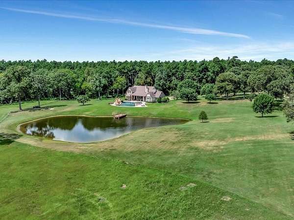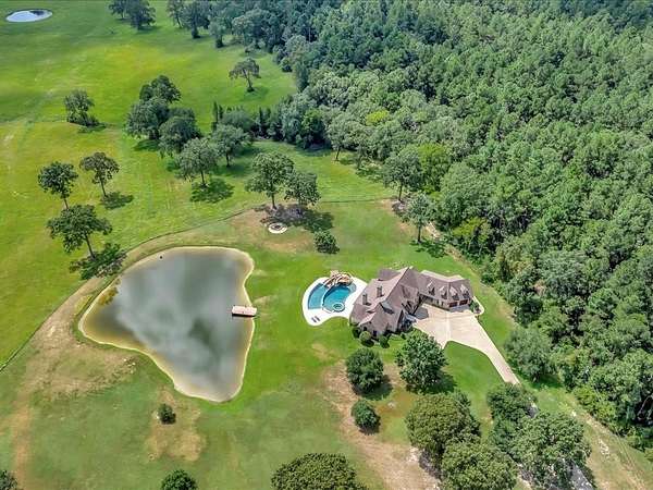 As you pass through the gated entrance, you're immediately welcomed by peace and privacy on this remarkable 203-acre estate. A winding drive leads to a beautifully designed home with an open, flowing floor plan that captures sweeping views of the rolling landscape. The residence offers five bedrooms, including two on the main level with a luxurious primary suite, and three additional bedrooms upstairs. Thoughtful spaces include a private office, an upstairs game room, and tasteful updates throughout. Outdoors, enjoy resort-style living with an infinity-edge pool, spa, dual water slides, and an inviting fireplace. The land is equally impressive, featuring a large pond with a pier, two additional ponds, scenic creeks, and walking trails frequented by abundant wildlife. A barn provides extra storage, and partial fencing adds flexibility. This extraordinary property seamlessly blends refined living with the beauty of nature.