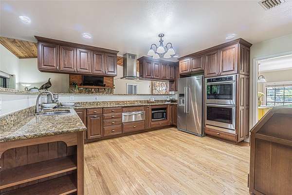 Your Private Country Retreat in the Heart of Lutz Spacious o Serene o One-of-a-Kind. Estates of this Caliber do not come along often. Great neighborhood. Welcome to a rare sanctuary where peaceful country living meets everyday convenience -- nestled on 1.52 acres in a quiet, non-deed restricted neighborhood in Lutz. This custom-designed estate offers a lifestyle of relaxed elegance, with space to breathe, entertain, and connect with nature. From the moment you arrive, you are welcomed by the majestic Grand Oaks, vibrant landscaping, and the unmistakable calm of a home that has been loved. Wildlife sightings--deer at dawn and songbirds in the trees--are your daily backdrop. Inside, this 4-bedroom, 2 full and 2 half-bath home offers over 3,100 square feet of beautifully finished living space (4,100+ under roof), thoughtfully crafted for both entertaining and everyday living. Step through double lead-glass doors into a warm, open layout accented by natural wood floors and stone details. At its heart is a true chef's kitchen featuring custom cabinetry, over 30+' of granite countertops, stainless steel appliances, double ovens, a warming drawer, and a cooktop with vent hood -- all seamlessly open to the expansive great room, 17x28. The Kitchen, 20x14, and Dining room, 13x15, are open to the Living room which has soaring cedar cathedral ceilings and a large wood-burning fireplace creating a stunning yet cozy gathering space. Host formal dinners in the elegant dining room with crown molding and chair rail accents. Unwind in the oversized primary suite, 17x16, a true retreat with patio access and a spa-style ensuite: dual comfort-height granite vanities, a walk-in mosaic tile shower includes a rain shower head, and private water closet with cabinets for an elegant linen closet. Near the primary suite is the first guest bedroom, 12x16, which can be used as an office. A split-bedroom layout ensures privacy, including two generous secondary bedrooms that have a unique jack-n-jill bathroom with each bedroom having their own half bath and sharing the shower in between. The secondary guest bedrooms, 19x14, & 17 x 12, are located on the separate side of the home and each one has two spacious closets and between the closet is a large linen closet for ample storage. One of the guest bedrooms has direct sliding-door access to the covered and screened patio. Directly off the Kitchen is the Guest Half Bath and the Delightfully massive laundry/utility room, 08x20, with built-in cabinetry that seem to go on and on. More upper cabinets over the granite counter including a full sink with a hookup for a secondary Refrigerator. Stepping outside to an entertainer's dream: a large, screened lanai, 32x11, with a pass-through kitchen bar, perfect for weekend barbecues or quiet evenings under the stars. Additional Highlights: Real wood floors throughout. Large Side-entry 2-car garage, 20x27, Detached gazebo for morning coffee or sunset views, 2-stall horse stable with tack room, water & electric, Double-pane windows & doors for energy efficiency, Pull-down attic storage, Two-zone A/C system, Attic space with ample height and space for additional storage area. Bring your family, your pets -- even your horses. With no HOA restrictions, you will enjoy true freedom in one of Lutz's most desirable hidden-gem locations. This is not just a home -- it is a lifestyle. Come experience the peaceful charm and unmatched comfort for yourself. You may never want to leave. Video Attached.