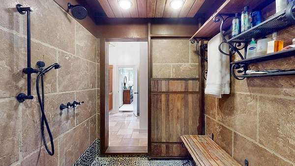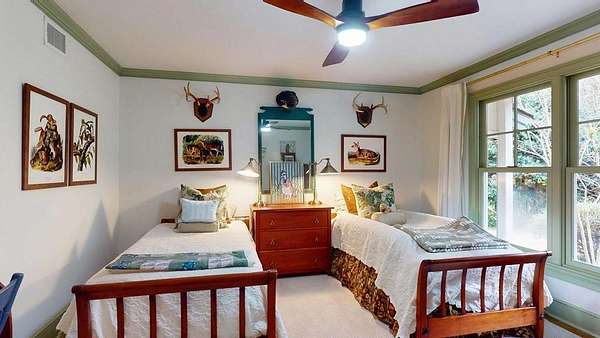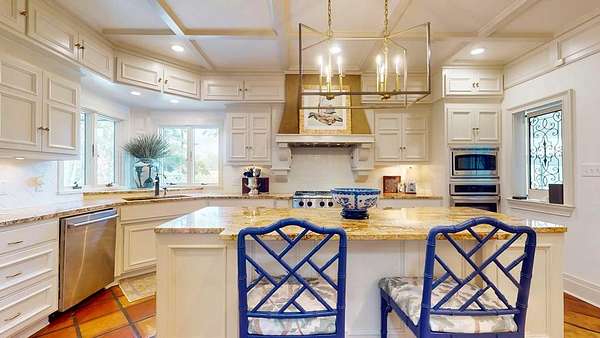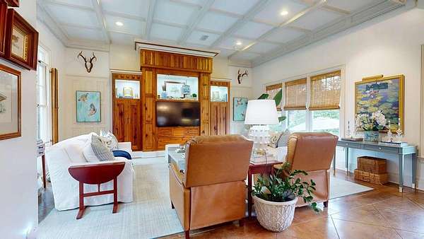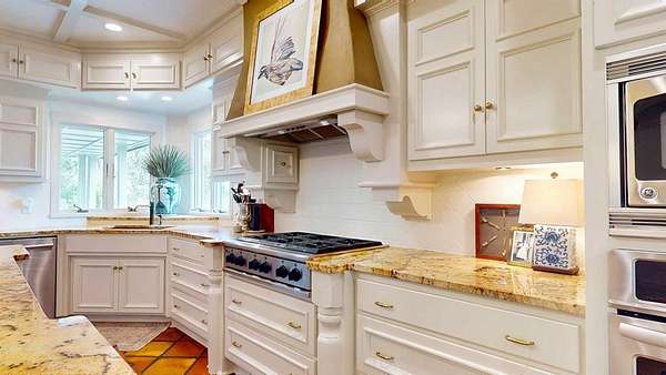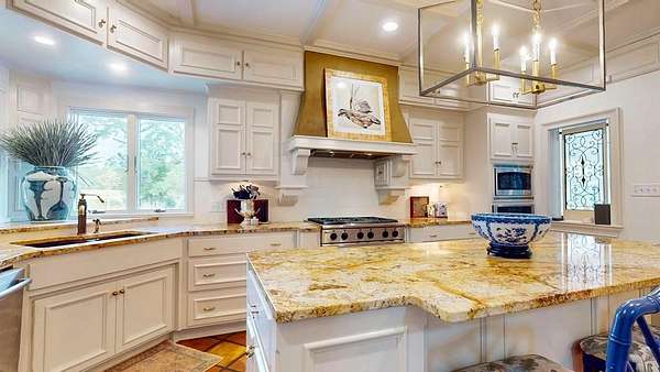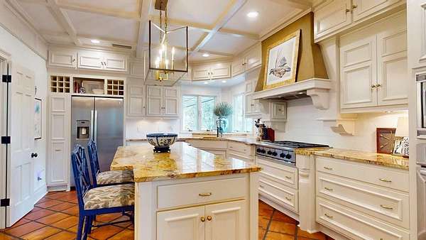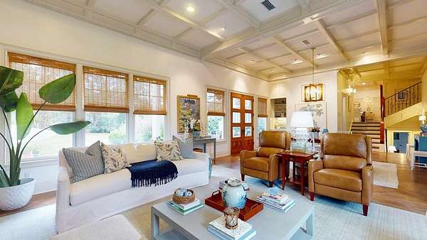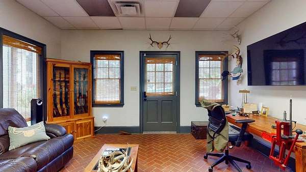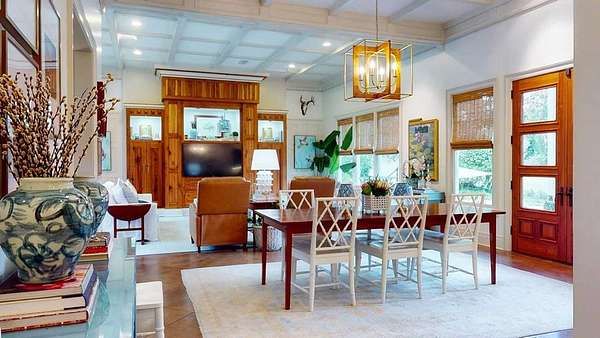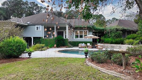 A custom-built home that perfectly blends luxury, craftsmanship, and country living. Situated on 22.56 acres just minutes from town, this property offers the peace and privacy of rural life with all the conveniences nearby. From the moment you step inside, you'll feel the "WOW" factor. This stunning home features 3 bedrooms, 2 full bathrooms, and 1 half bathroom, plus an additional room that can serve as a fourth bedroom, home gym, or office. The spacious living room is a showpiece, with soaring coffered ceilings, heart pine cabinetry, and a built-in bar with a marble countertop and wine cooler. Custom doors and fine finishes are found throughout, showcasing the attention to detail that makes this home truly one of a kind. The kitchen is designed for both style and function, offering abundant cabinetry, granite countertops, and a gas cooktop-perfect for the home chef. The large master suite is a private retreat, featuring a cozy sitting area, gas fireplace, and a loft space ideal for reading or a creative studio. The master bathroom feels like a luxury spa with split vanities, custom cabinetry, a soaking tub set in a teak and copper base, and a beautifully tiled walk-in shower. Additional highlights include a six-zone HVAC system for year-round comfort and a charming side cottage that offers endless possibilities-whether you need a home office, man cave, guest space, or extra storage. The cottage also includes its own garage and a breezeway connecting it to the main home. Step outside to your own backyard oasis featuring a sparkling saltwater pool with a waterfall, surrounded by picturesque views of the property. Large windows throughout the home fill every room with natural light and allow you to take in the beauty of the surrounding landscape. If you've been searching for a custom home on acreage close to town, this is the one you've been waiting for. Schedule your personal tour today and experience all that this exceptional property has to offer.