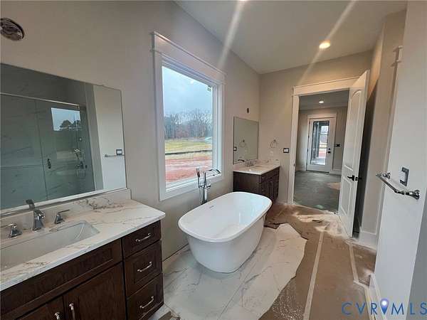 The Margate is a modern farmhouse style RANCH PLAN with so many luxury features. Tucked away on a 2 acre lot in sought after Dogwood Meadows, you can enjoy country living while still being close to all of the creature comforts of Short Pump. This is such a flexible floorplan. Do you need 4 bedrooms including the primary on the first floor? Check, we have it. Would 3 bedrooms and an office work better for you? No problem, bedroom 4 easily converts to an office. Do you need an extra bedroom on the second floor? Got ya covered. This massive flex space on the second floor has a private bath and closet so it can function as a bedroom suite or really any kind of rec space you can imagine. Do you need storage? Got it. Three car garage? Check. Amazing outdoor living spaces? Done. In additional to just a great floorplan, the luxury finishes in this house are just amazing. Here is just a sample... hardwood floors throughout all first floor living spaces and primary bedroom, gourmet kitchen with quartz tops, GE stainless appliances, quartz backsplash, massive walk-in pantry and more, spacious vaulted family room with gas fireplace, built-ins and access to the rear covered patio, a personal oasis in the master bedroom with access to the raised patio, a spa like private bath, and a HUGE walk-in closet with direct access to the laundry room, heavy trim package, tons of recessed lighting, rear covered raised patio with stamped concrete floor and gas fireplace, smart lighting package from Deako, and so much more. Large ranch plans like this in the Richmond area are impossible to find so this home is a bit of a unicorn. Don't miss your chance to own this one! Estimated completion in March 2026.