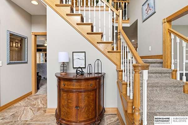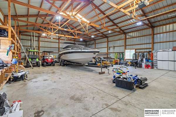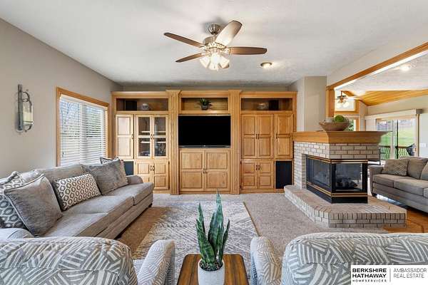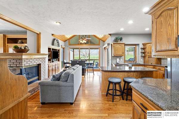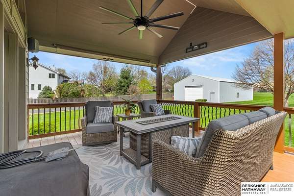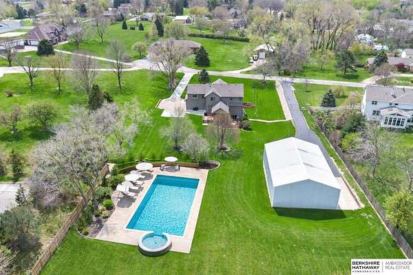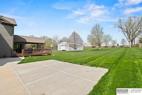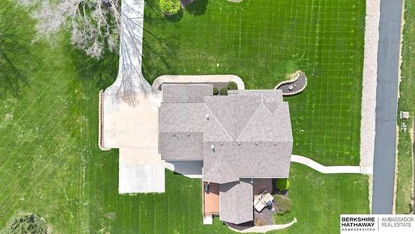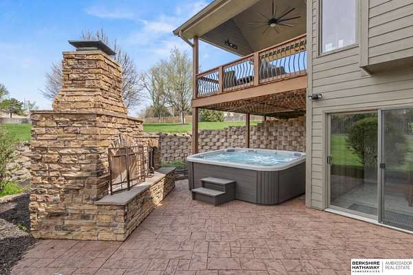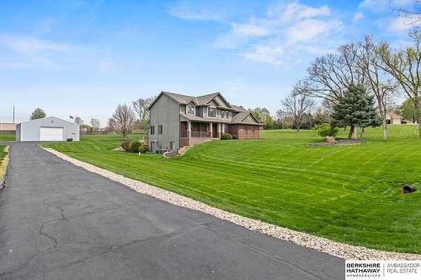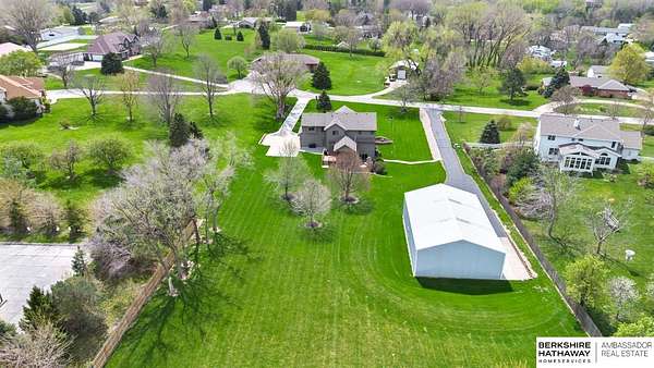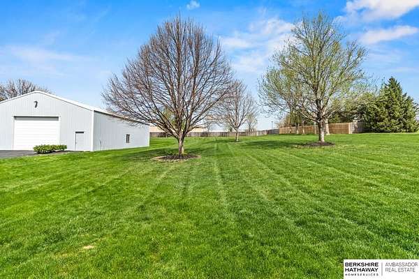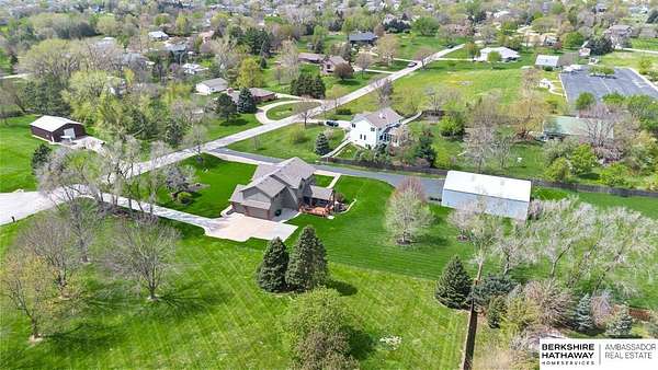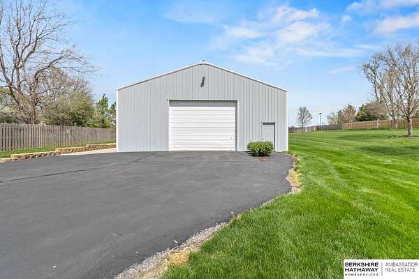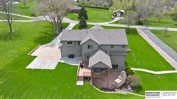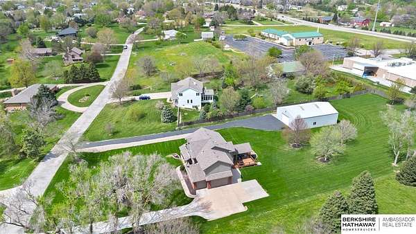 Kari Lukowski, M: 402-215-5371, Kari.Lukowski@thebrileyteam.com, https://www.bhhsamb.com - Rare 1.66-acre walkout property featuring a contractor-grade 40×60 shop with its own driveway & RV parking with hookups—ideal for storage, vehicles, or even a potential indoor sports court. Built as the builder’s personal residence, this home offers quality craftsmanship, spacious living, and a fireplace on every level. The main level welcomes you with a 17-ft entry and open staircase, with living spaces flowing to both sides, including a kitchen with island and hearth-style seating plus formal dining. Upstairs, the primary suite features a sitting area and ensuite with jetted tub, separate shower, and dual vanities, plus 3 bedrooms and a full bath. Lower level includes a family room, bedroom, full bath, and private office with exterior entrance. Outdoor living includes a covered composite deck, stamped patio, and built-in stone fireplace overlooking the irrigated grounds with room for a future p
