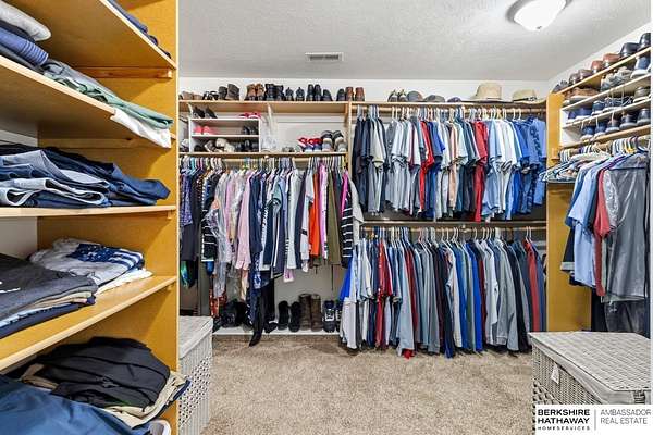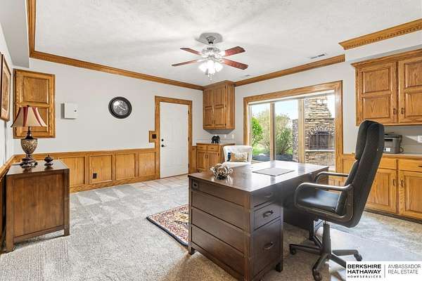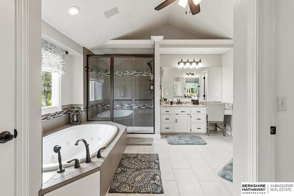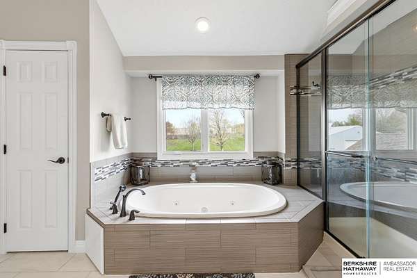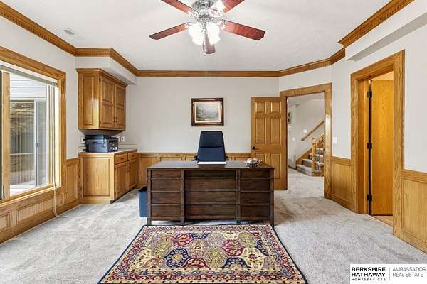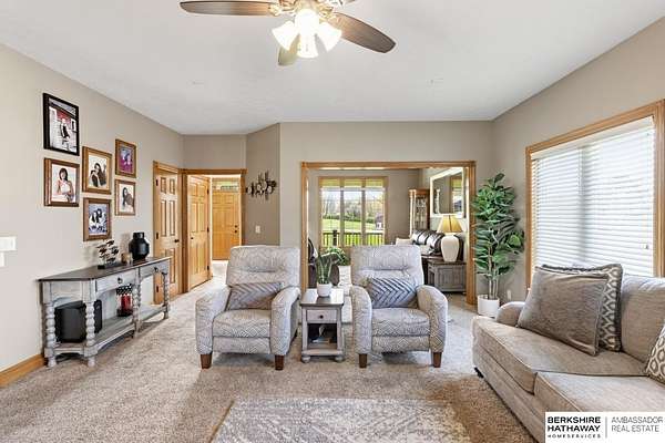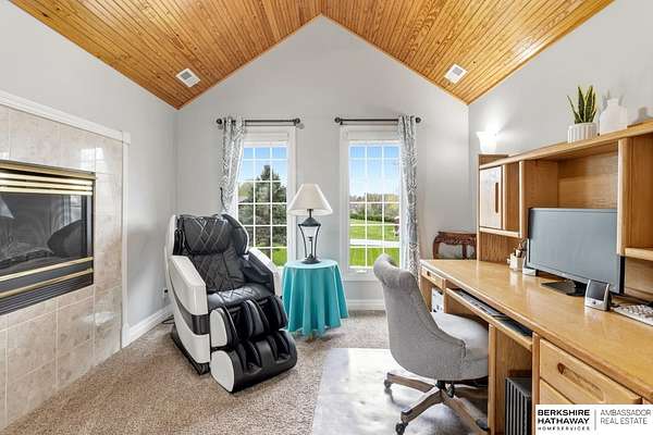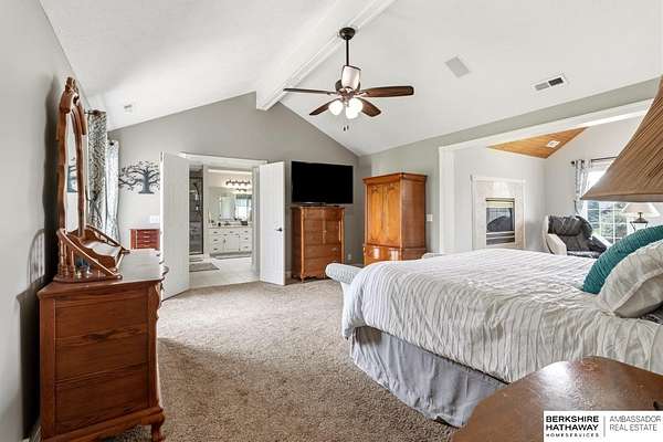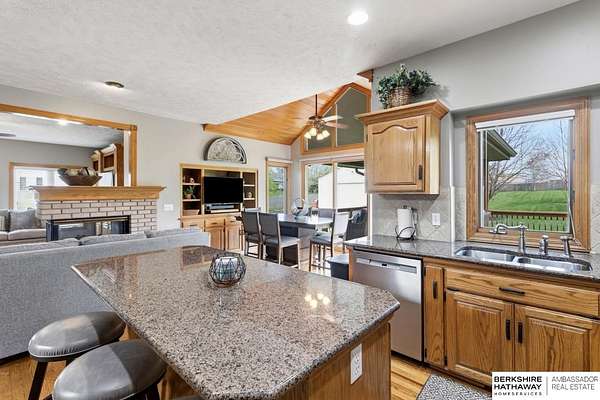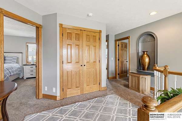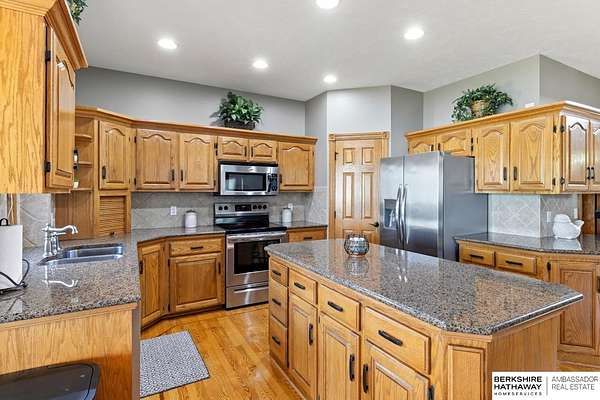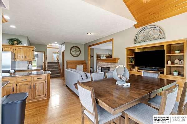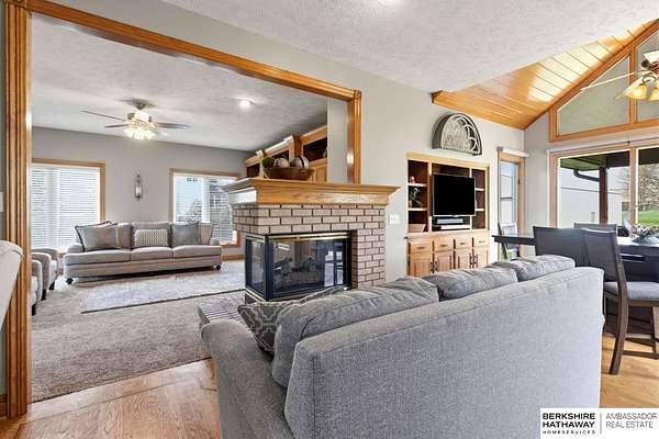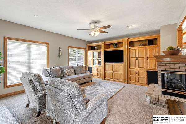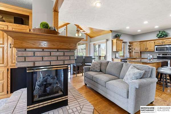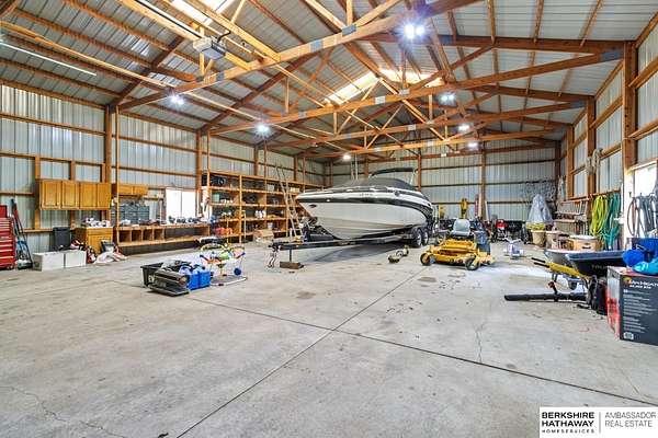 Kari Lukowski, M: 402-215-5371, Kari.Lukowski@thebrileyteam.com, https://www.bhhsamb.com - Rare 1.66-acre walkout property featuring a contractor-grade 40×60 shop with its own driveway & RV parking with hookups—ideal for storage, vehicles, or even a potential indoor sports court. Built as the builder’s personal residence, this home offers quality craftsmanship, spacious living, and a fireplace on every level. The main level welcomes you with a 17-ft entry and open staircase, with living spaces flowing to both sides, including a kitchen with island and hearth-style seating plus formal dining. Upstairs, the primary suite features a sitting area and ensuite with jetted tub, separate shower, and dual vanities, plus 3 bedrooms and a full bath. Lower level includes a family room, bedroom, full bath, and private office with exterior entrance. Outdoor living includes a covered composite deck, stamped patio, and built-in stone fireplace overlooking the irrigated grounds with room for a future p