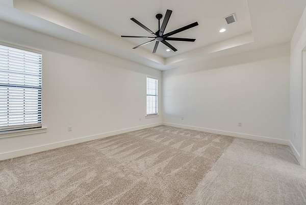 - Auto Garage Opener, Book Cases, Carpeting, Ceiling Fan(s), High Ceilings, Jetted Tub, Shades/Blinds, Tile Flooring
