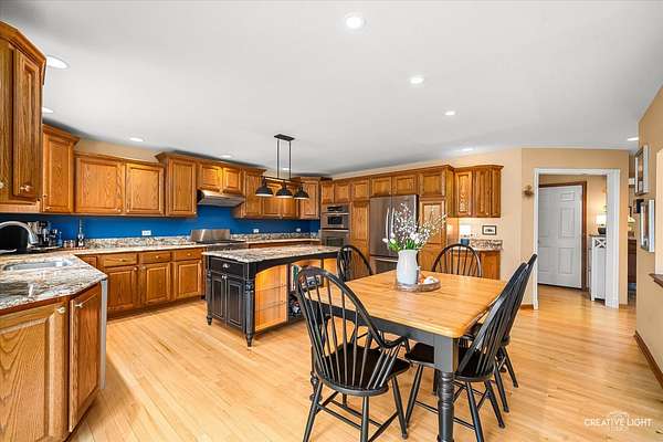 Welcome to 1813 Winchester Ct. in the highly sought after Southfield Estates neighborhood! This spacious and beautifully maintained 4-bedroom, 2.5-bath home set on 3 private acres, perfect for those seeking comfort, functionality, and room to enjoy country living. The main level features hardwood floors throughout most of the space. The chef's dream kitchen boasts custom cabinetry with granite countertops, and KitchenAid stainless steel appliances including a convection wall oven/microwave combination, steam/convection dual fuel stove, refrigerator and dishwasher. A sunken family room with a cozy fireplace provides the perfect gathering spot, while two separate office spaces offer flexibility for working from home or hobbies. The finished basement is designed for entertaining and relaxation, featuring a custom wet bar, recreation area, a dedicated exercise room and a craft / art room. Three separate storage areas complete this level. The spacious primary suite includes an updated bath with separate vanities and a large walk-in closet, while three additional bedrooms offer generous space. Outside, the property is a dream for equestrian enthusiasts. Enjoy PVC fenced 151' x 65' sand base horse riding arena, two grass pastures, a sacrifice lot and a separate 20 x 50 barn with beautiful tongue-and-groove walls, three stalls with dutch doors and full sliding doors, and an attached hay storage room (10 x 15'). Horses and chickens are allowed. Additional highlights include a heated attached garage and expansive outdoor space offering privacy and peaceful surroundings.
