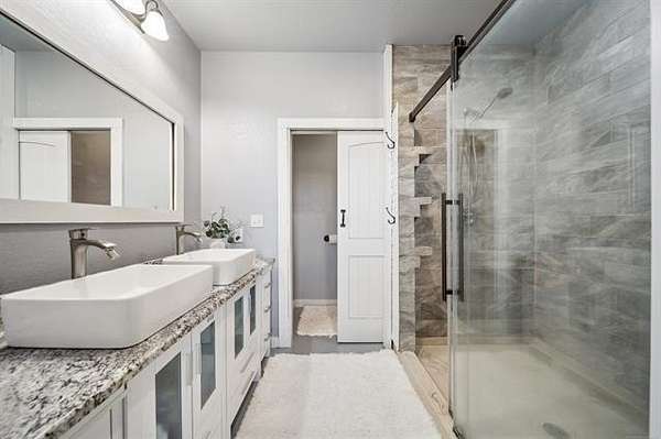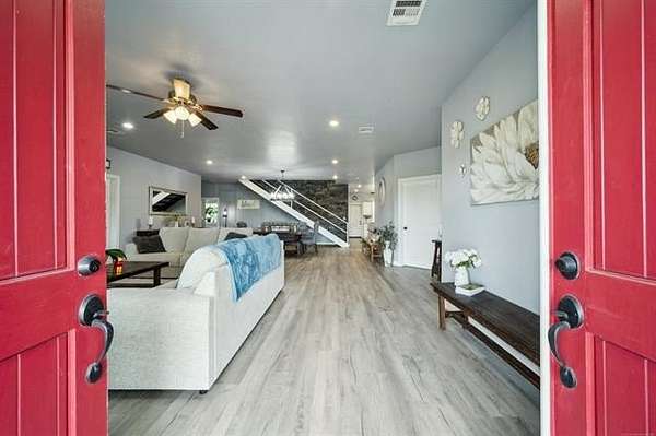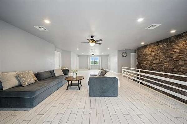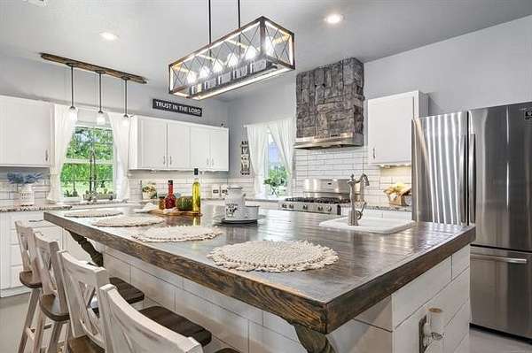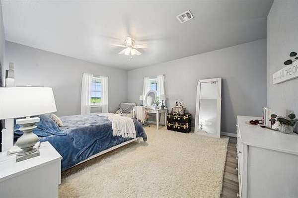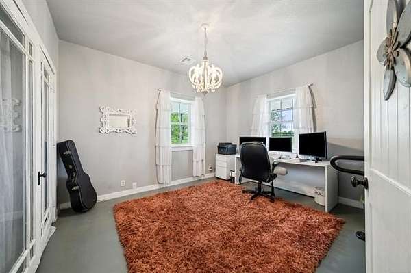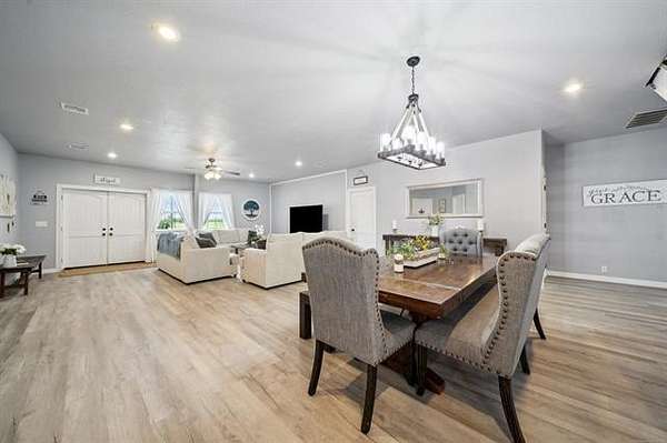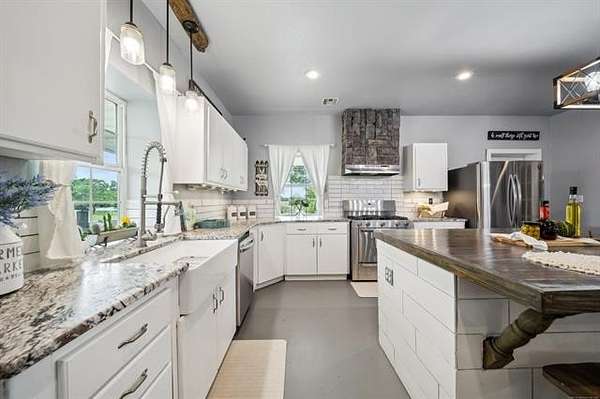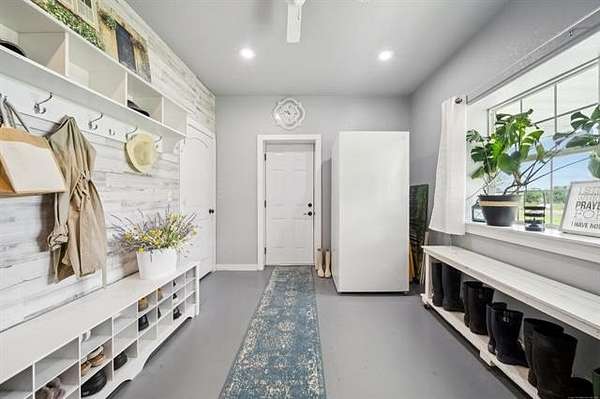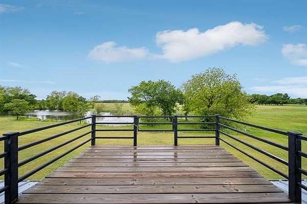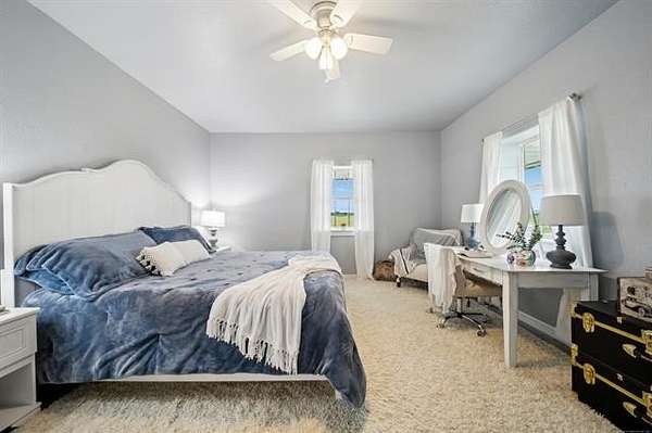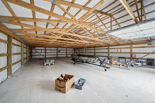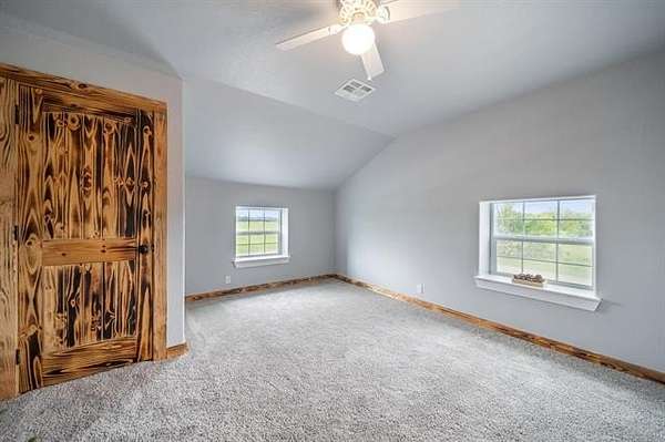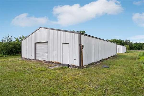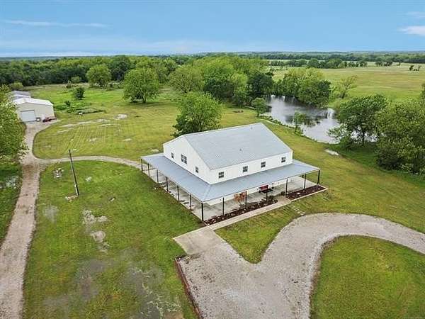 This exceptional, fully furnished Barndominium estate on 10 acres is ideal for a private retreat, hunting and fishing lodge, farmstead, or even a one-of-a-kind event venue. Inside, the spacious Barndominium boasts 8 bedrooms and 5 bathrooms, offering plenty of room for family, guests, or multiple uses. The open-concept living and dining area is perfect for entertaining, and the gourmet kitchen features a stunning farmhouse sink, textured granite countertops, a massive butcher block island with views of the pond and prairie, and top-of-the-line appliances including an oversized gas range, refrigerator, electric oven, dishwasher, and microwave. With three large walk-in pantries, storage is never an issue. The primary suite on the first floor features dual vanities, an oversized walk-in shower with dual shower heads, a walk-in closet, and an additional storage closet. Also on the first floor are a second bedroom (or office), a full bath, half bath, laundry area, and multiple access points including double front doors, kitchen door, back door, and mud room entry. Upstairs, you'll find six additional bedrooms, two full bathrooms, and an expansive living area that can be used as a game room, media room, fitness space, or anything you can imagine. Unwind on the second-story balcony and take in breathtaking Oklahoma sunsets. Outdoors, the possibilities are endless: Two stocked fishing ponds, Shooting range and ATV trails mature pecan trees. Three large workshops (50x52, 40x60, 40x60), all with electricity, concrete floors, and insulation ideal for storing boats, tractors, vehicles, or converting into event or commercial spaces. This property is also equipped with spray foam insulation, a storm shelter, and fast fiber optic internet, blending comfort and functionality. Additionally, three capped oil wells (locations unknown) are located on the property. ADDTL 40 ACRES AVAILABLE FOR PURCHASE
