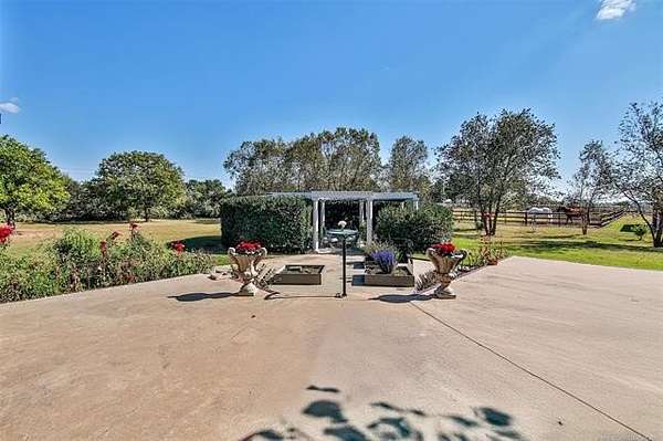 Experience timeless craftsmanship & refined comfort in this exquisite custom home nestled on a beautifully treed 5-acre gated lot w/large shop and arena! Blending old-world charm with modern luxury, this estate offers both character & convenience--plus all NEW Windows, Roof, Siding, & Paint! A grand foyer opens to elegant formal dining area & spacious two-story living room w/soaring ceilings, gas fireplace & wall of windows that fill the space w/natural light. Gorgeous real hardwood floors, rich architectural details & modern upgrades throughout! Gourmet kitchen w/beautiful chiseled-edge granite, Newer stainless steel app., Dbl oven, gas range w/pot-filler, & custom cabinetry w/built-in fridge. Lg island w/sink, bright breakfast nook, and coffee & wine bar. Private office w/exterior access, granite counters, custom built-ins & Fort Knox safe w/stylish half bathroom across the hall. Main-level master suite w/sitting area, dual vanities, copper soaking tub, & cedar-lined WIC. Utility room w/custom shelving, granite, sink, half bath & exterior access. Upstairs is a quaint landing, two bedrooms & a full bathroom. A breezeway connects a charming courtyard to the expansive back patio overlooking raised garden beds & a sizable cabana w/spa hook-up - perfect for relaxing or entertaining in a beautiful park-like setting! Spacious 50' x 64' pull through shop thoughtfully outfitted w/premium stalls optimal for horses, hobbies or storage. Two 12'-wide storage bays on each side, ideal for trailers, implements, or additional workspace. Lg fenced arena provides endless possibilities for equestrian activities, training, or recreation w/plenty of room to ride, work, & enjoy open space! This practical property has two convenient entrances for easy access & ample paved parking, perfect for Lg vehicles, extra guests, or equipment. Easy access to hwys & schools in the coveted Bixby school district. A rare find w/timeless design, generous space & modern amenities - Refined Country Living!