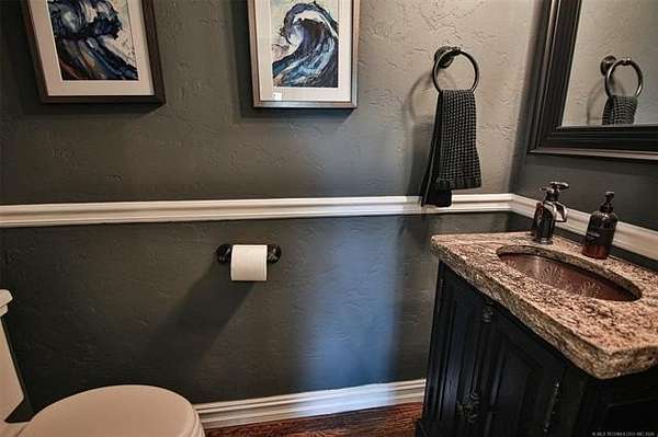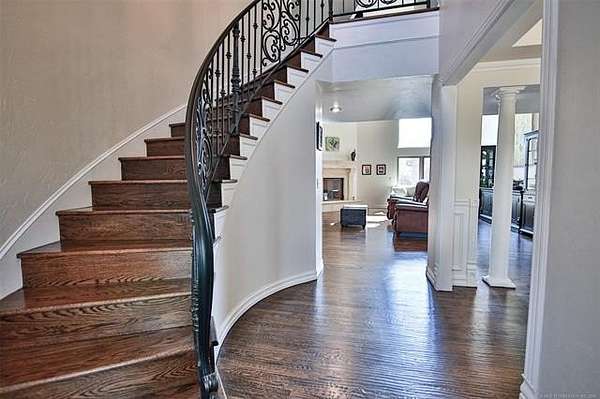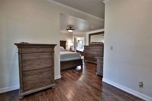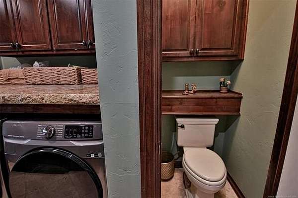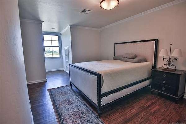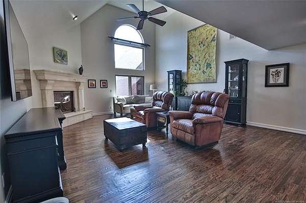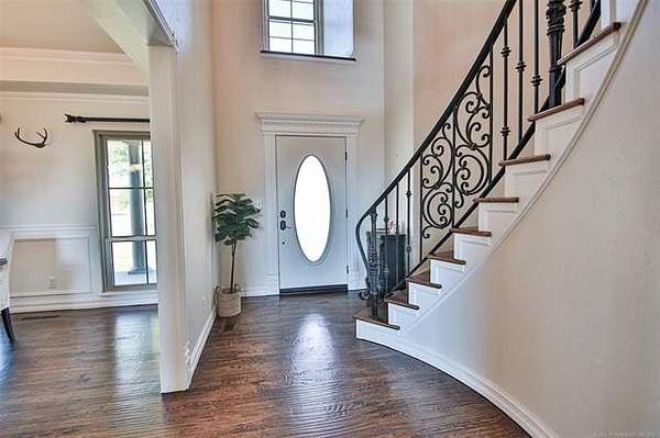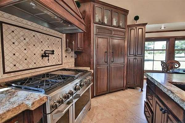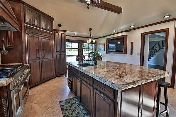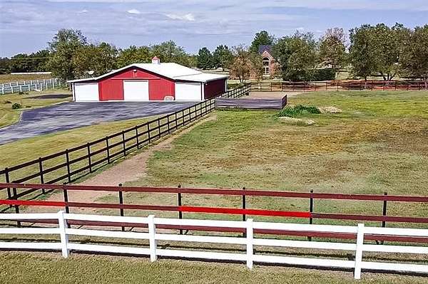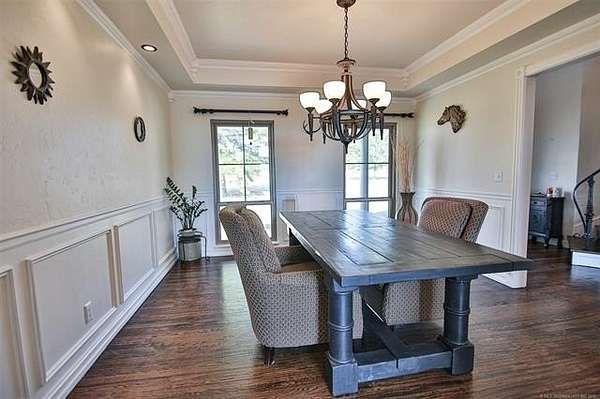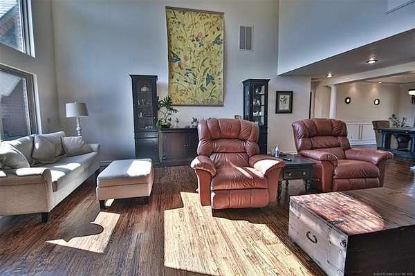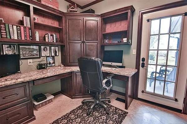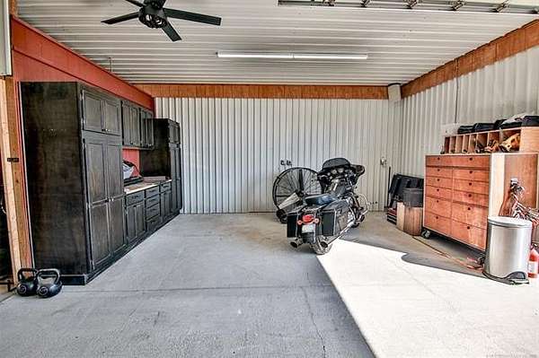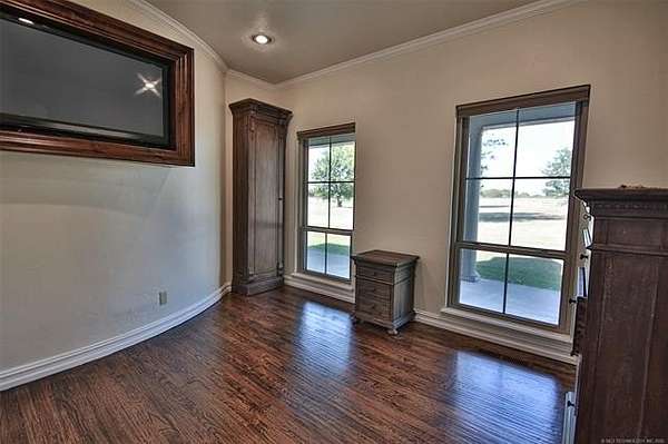 Experience timeless craftsmanship & refined comfort in this exquisite custom home nestled on a beautifully treed 5-acre gated lot w/large shop and arena! Blending old-world charm with modern luxury, this estate offers both character & convenience--plus all NEW Windows, Roof, Siding, & Paint! A grand foyer opens to elegant formal dining area & spacious two-story living room w/soaring ceilings, gas fireplace & wall of windows that fill the space w/natural light. Gorgeous real hardwood floors, rich architectural details & modern upgrades throughout! Gourmet kitchen w/beautiful chiseled-edge granite, stainless steel app., Dbl oven, gas range w/pot-filler, & custom cabinetry w/built-in fridge. Lg island w/sink, bright breakfast nook, and coffee & wine bar. Private office w/exterior access, granite counters, custom built-ins & Fort Knox safe w/stylish half bathroom across the hall. Main-level master suite w/sitting area, dual vanities, copper soaking tub, & cedar-lined WIC. Utility room w/custom shelving, granite, sink, half bath & exterior access. Upstairs is a quaint landing, two bedrooms & a full bathroom. A breezeway connects a charming courtyard to the expansive back patio overlooking raised garden beds & a sizable cabana w/spa hook-up - perfect for relaxing or entertaining in a beautiful park-like setting! Spacious 50' x 64' pull through shop thoughtfully outfitted w/premium stalls optimal for horses, hobbies or storage. Two 12'-wide storage bays on each side, ideal for trailers, implements, or additional workspace. Lg fenced arena provides endless possibilities for equestrian activities, training, or recreation w/plenty of room to ride, work, & enjoy open space! This practical property has two convenient entrances for easy access & ample paved parking, perfect for Lg vehicles, extra guests, or equipment. Easy access to highways & schools in the coveted Bixby school district. A rare find w/timeless design, generous space & modern amenities - refined country living!