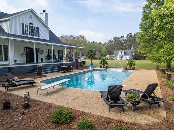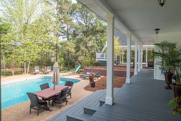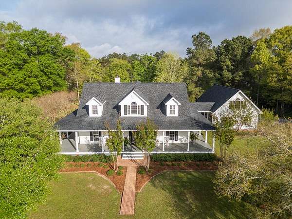 Private 5.1-acre Family Retreat, adjacent to Bellgrass, featuring a nostalgic 3-bedroom two-story Colonial Farmhouse with a sparkling backyard saltwater pool right off the amazing wrap-around porch. This custom family-focused home includes 26 light-flooding windows, 20' soaring ceilings in the great room, Chicago brick pavers in the foyer entrance, guest bath, memory-making family dining, updated ship-lapped custom farm kitchen and bay windowed breakfast. the unique floor plan provides total privacy in each of the interior bedrooms as well as the potential 810-sf 4th bedroom located over the 2-car carport area. Each bedroom has a private bath access. The magnificent spiral staircase leads to the upper balcony plus entry to bedrooms #2 and #3. This unique property also includes a 696-sf guest house above a 485-sf garage/workshop; a second 864 sf workshop and a 525-sf carport are attached to the main 2-story colonial home. A mature fishing pond with big catches awaits the fortunate new homeowners! Twenty-nine soon-to-burst-into-bloom crepe myrtles welcome you down your long driveway approach to HOME! Call 601-545-3900 for your private showing!