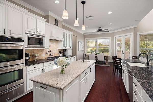 NO HOA ~ This beautifully manicured 3.06-acre property offers multi-generational living options. The grand tree-lined entrance will lead you to a custom-built 3428sqft, 3 bedrooms, 2.1 bathrooms, home nestled among mature trees. With timeless designed craftsmanship and exceptional details, such as crown molding, high ceilings, and a stunning floor-to-ceiling stone gas fireplace, this home offers an inviting blend of elegance, warmth, and refined comfort throughout. The kitchen is the heart of the home, offering an impressive amount of counter space and storage, an oversize center island, fully equipped with double ovens, a gas cooktop, built-in refrigerator and large walk-in pantry. Double doors lead to the first-floor owner's suite where there are beautiful views of the property, a seating area, private ensuite bath, and a generous walk-in closet. Additional conveniences include a home office, separate mud room with sink and storage. The laundry room also offers a sink and ample storage. Step outside to the extensive covered patio, featuring a built-in grill, sink, and prep area. Ideal for gatherings or quiet evenings, the outdoor living space is a true extension of the home. Take a sweet stroll to the surprisingly spacious 1,486sqft GUEST HOUSE featuring 2 living areas, 2 bedrooms, 1 full bath, and a beautiful eat-in kitchen - making this ideal for the multi-generation family living, flex space or home office and be sure to check out the upstairs storage! This property offers an amazing amount of parking space: with a 2-car attached garage on the main home, 2-car carport on the guest house, with additional space for RV, Boat or oversized vehicles; This property delivers a rare combination of quality, space, and versatility; Located in LovejoyISD! Convenient to Heritage Ranch Golf Resort, Woodhaven Stables, Parkside Trail, shopping, dining and so much more! NO HOA!! Horses and livestock are welcome!! Offer Instructions and Notable Features in Transaction Desk.