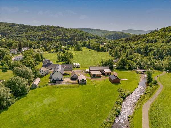 A rare opportunity in the village of Bovina Center, NY. A turnkey Inn/B&B thoughtfully renovated adjacent to a 'blank canvas' storefront building awaiting its next venture with tremendous potential as a restaurant space. A Carriage house apartment is also on the North side of Main St. resting on 8.5 acres. Additionally, a former dairy processing facility & farm is located on the south side of Main St. A total of 57+ acres set in a pristine valley with deep agricultural roots. The 'Creamery Building' has undergone an extensive renovation with state-of-the-art dairy processing for butter, cheese, milk and yogurt. An incredible opportunity for an agri-tourism business with farming and production. Or, harness the past use of the building and create a one of a kind brewery/distillery. Enter a gift shop/reception that leads to an observation deck of the processing floor. The facility was once used to pasteurize and bottle milk, churn and mold butter, produce and package yogurt and make a variety of cheeses but is open to endless potential. The building was fully restored and updated with a standing-seam roof, new heating and cooling systems. The property also includes a renovated milk barn, carriage house with hand-hewn beams and multiple buildings for dry storage and future expansion. Finally a new bridge over the Brush Brook connects to an additional 44+ acres and a beautiful river walkway.