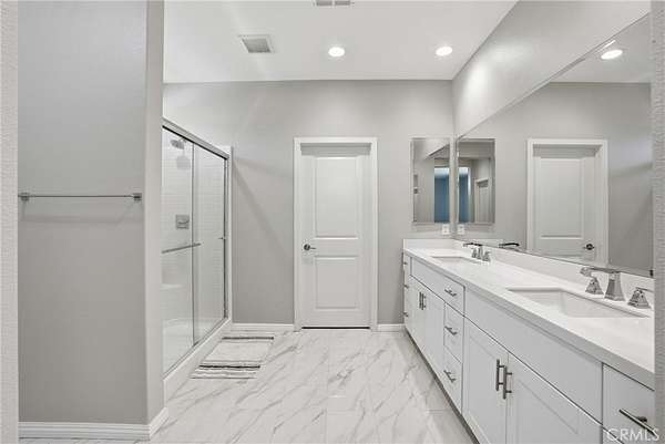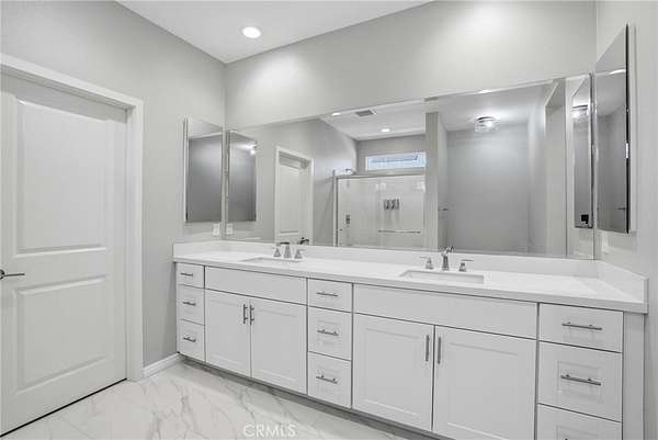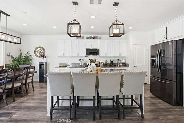 The main living area flows seamlessly into the spacious kitchen and dining space, creating the perfect setup for entertaining and daily living. The kitchen features a large center island with seating, abundant cabinetry, sleek countertops, stainless steel appliances, and contemporary lighting. Upstairs, the generous primary suite offers a peaceful retreat with a spa-inspired bathroom featuring dual sinks, a large walk-in shower, and a spacious walk-in closet. Additional bedrooms provide flexibility for family, guests, or a home office.