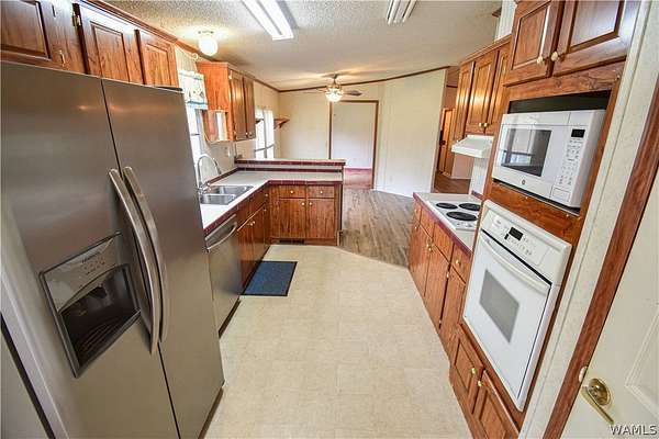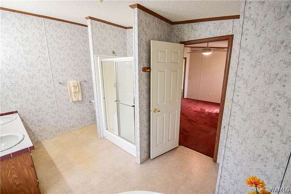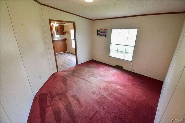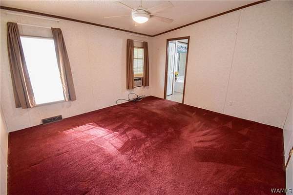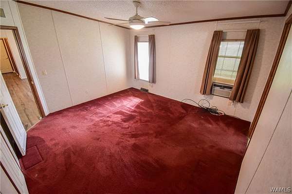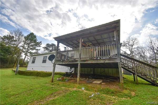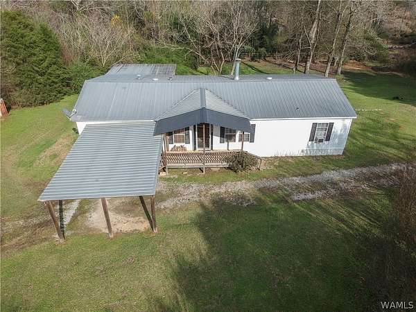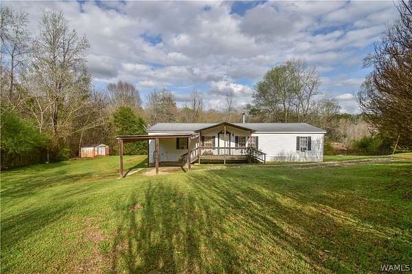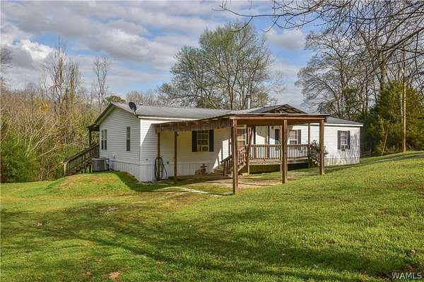 Escape to tranquility with this charming mobile home situated on a spacious 5-acre lot in the heart of rural Tuscaloosa County. This well-maintained residence features 3 bedrooms and 2 bathrooms, offering a split-bedroom floor plan. The primary suite is a true retreat, thoughtfully separated from the other bedrooms. Indulge in the luxurious primary bathroom, complete with a large soaking tub, a separate shower, and a double vanity sink. The home has an inviting eat-in kitchen, great for casual dining. Double doors lead directly from the kitchen onto a covered porch, creating a tranquil setting for morning coffee or enjoying the serene, expansive property. Experience peaceful country living with room to breathe!