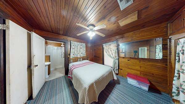 155-acre (+/-) of unrestricted naturally rolling terrain, perfect for a homestead or weekend getaway, and has unparalleled commercial potential. Property includes live water frontage on Trout Creek and Big Cow Creek. The property includes a cozy 2-bedroom, 1-bath cabin with an attached 1-car garage, two covered equipment sheds, an unfinished efficiency cabin, and several outbuildings and beautiful manicured yard for a park like setting. Conventional septic system and newly updated water well. A 50 Amp RV hookup adds extra convenience. Timber exemption in place and the entire acreage features well-maintained high lines, numerous established trails, accessing and exploring the property is a breeze. While the majority of the acreage is timberland and ready to be harvested, the area around the cabin is cleared & kept in a park like setting. The acreage includes beautiful hardwood bottoms perfect for hunting.