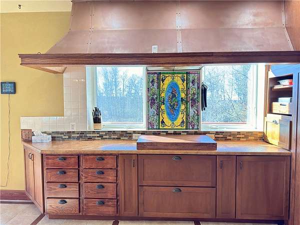 Stunning County Retreat on Over 26 Acres of Forest Discover this beautiful 4 bd / 3 ba country home nestled on more than 26 acres of mature woods, offering exceptional privacy and outdoor enjoyment. Perfect for hunting enthusiasts, the property features deer stands, plant able food plots, and scenic walking paths through the woods. Numerous fruit trees dot the landscape, enhancing the natural beauty. The home boasts a spacious garage with a newer concrete slab and sidewalk, providing convenient storage and workspace. Inside, you'll be greeted by soaring 21-foot vaulted wood ceilings and a wall of windows that showcase breathtaking views of the Hanes Creek valley below and Iver's Mountain in the distance. The gourmet Tuscan-style kitchen is equipped with high-end appliances, a bakers' counter, and ample cabinetry, perfect for culinary enthusiasts. The living room features surround sound speakers, while a large loft offers additional space with stunning outdoor vistas. Excellent energy efficiency is achieved through an in-floor heating system powered by an on demand system. The walk-out lower level includes two bedrooms, a family room, and an additional unfinished bedroom area, with a bathroom that is plumbed and ready for your finishing touches. Additional amenities include reliable high-speed internet, a dedicated camper site with electricity, and ample space for outdoor activities. If you're seeking privacy and natural beauty, this property is a true retreat!