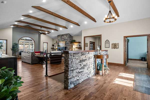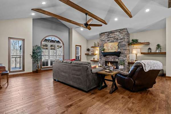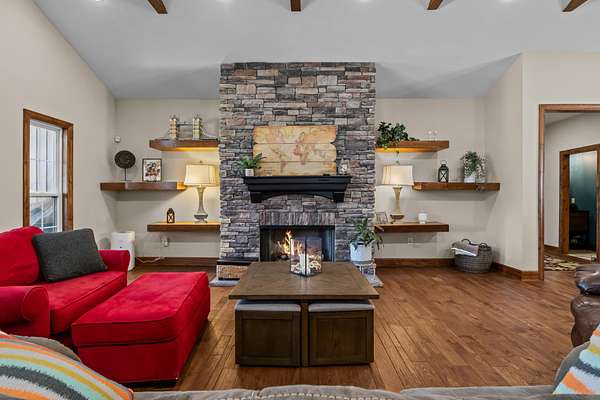 Experience the pinnacle of luxury living in this sprawling custom estate, perfectly situated on 7.36 private acres overlooking a serene pond with a community walking trail. Designed for both grand entertaining and comfortable everyday living, this property features elegant formal living and dining rooms with gas fireplaces, a chef's dream kitchen with walk-in pantry, a massive spa-like primary suite that is the essence of comfort, generous guest bedrooms with walk-in closets, a well-appointed laundry room, a daylight walk-out basement with a dedicated theater room, a versatile rec room, cozy den with fireplace, kitchenette with dining area, and office that could serve as a 5th bedroom. The exterior is just as impressive with flexible outdoor spaces offering a seamless transition between indoor comfort and outdoor openness, entertainment areas with gorgeous views, professional landscaping with water features, covered open fire cooking area, fenced backyard, and a concrete circle driveway for enhanced curb appeal and ample parking. The spectacular detached shop is sure to impress with a studio apartment with gas fireplace, full bath, kitchenette, dedicated dog washing station, 2-car lifts, 4 garage doors, and a professional golf simulator room--a car enthusiast or hobbyist's dream come true! This property is a quintessential "lifestyle estate" with every possible luxury, amentity or ugrade included! The detached shop and attached 2-car garage are fully climate controlled with heating and air. Excellent location less than a mile from Walmart. 24 hour notice required to show. By appointment only. Call Tiffany for more information 615-554-2151.