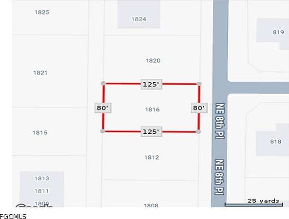 From Pine Island Road head north on Andalusia Blvd to right on NE 19th Ter to Right on NE 8th Place lot will be on the right look for sign and call.