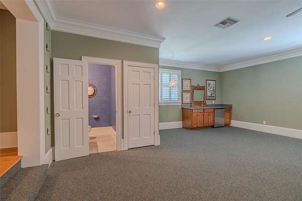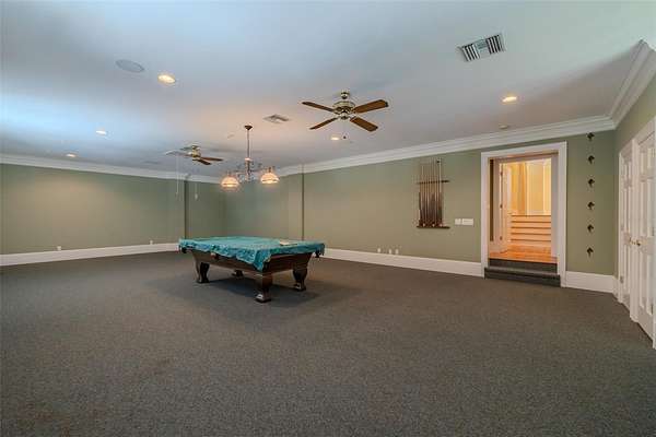 Accessible via a private staircase, the second level features four spacious bedrooms—one with a private bath and two sharing a Jack-and-Jill bathroom—alongside an office/den, a laundry chute, a cedar closet and a massive bonus room complete with a bar area and half bath. Outside, the brick-paved lanai overlooks an extraordinary pool and jacuzzi, offering a front-row seat to the conservation lot for bird watching and enjoying nature. Professional-grade infrastructure defines this property, featuring full height concrete block exterior, an attached 4-car side-entry garage and a detached, air conditioned 2-car garage with insulated doors, pre-plumbed for a potential in-law suite. The home is built with "commercial grade" bones, including red oak floors, crown molding, 10-foot ceilings, top-of-the-line Andersen double-pane windows and a central vacuum. Modern efficiencies abound with 4 AC units (1st and 2nd floor replaced in 2017 and 2021), R32 insulation, pest tubes in the walls, provisions for an in-floor safe in the office and programmable recirculation pumps for instant hot water.